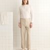 These trousers are inspired by men’s pants from the midcentury. We reproduced the silhouette in piqué cotton for this style. The trousers have a mid-rise and a wide-leg fit.
