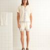 This shirt is inspired by a children’s souvenir tee, circa 1970s. We reimagined the original design, with its cartoon fish and ringer neckline, on a boxy tee with flocked lettering.