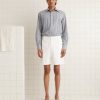 Blouse en coton ornée de fleurs bleues sur fond écru.