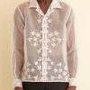 – Bavettes doublées en coton fleuri, froncée et volantée devant, plate derrière