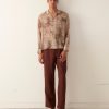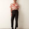 This short sleeve shirt is inspired by an unfinished quilt top, circa 1910s-1930s. This historical reproduction features various calicos and shirting fabrics in muted shades of grey, blue, and cream. Bode logo embroidered on back.