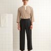 These trousers are inspired by an alphabet quilt from the early 20th century. We recreated the original quilt for this style, incorporating “1966,” “NY,” and “BODE” into the pattern. The trousers have a mid-rise and a straight leg.