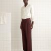 These trousers are inspired by a twirler’s uniform from a marching band, circa 1960s. We reproduced the rippling gold sequin trim along the side seam and back pocket. The trousers are made of black corduroy and have a high rise and a straight leg.