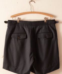 These shorts are made from deadstock wool, purchased from a tailor in Buffalo, NY, who closed his shop in the 1970s. He imported all of his materials from the UK and Italy, and many of the fabrics came from Savile Row wool suppliers. They had been sitting in his storage unit until we purchased them sixty years later.