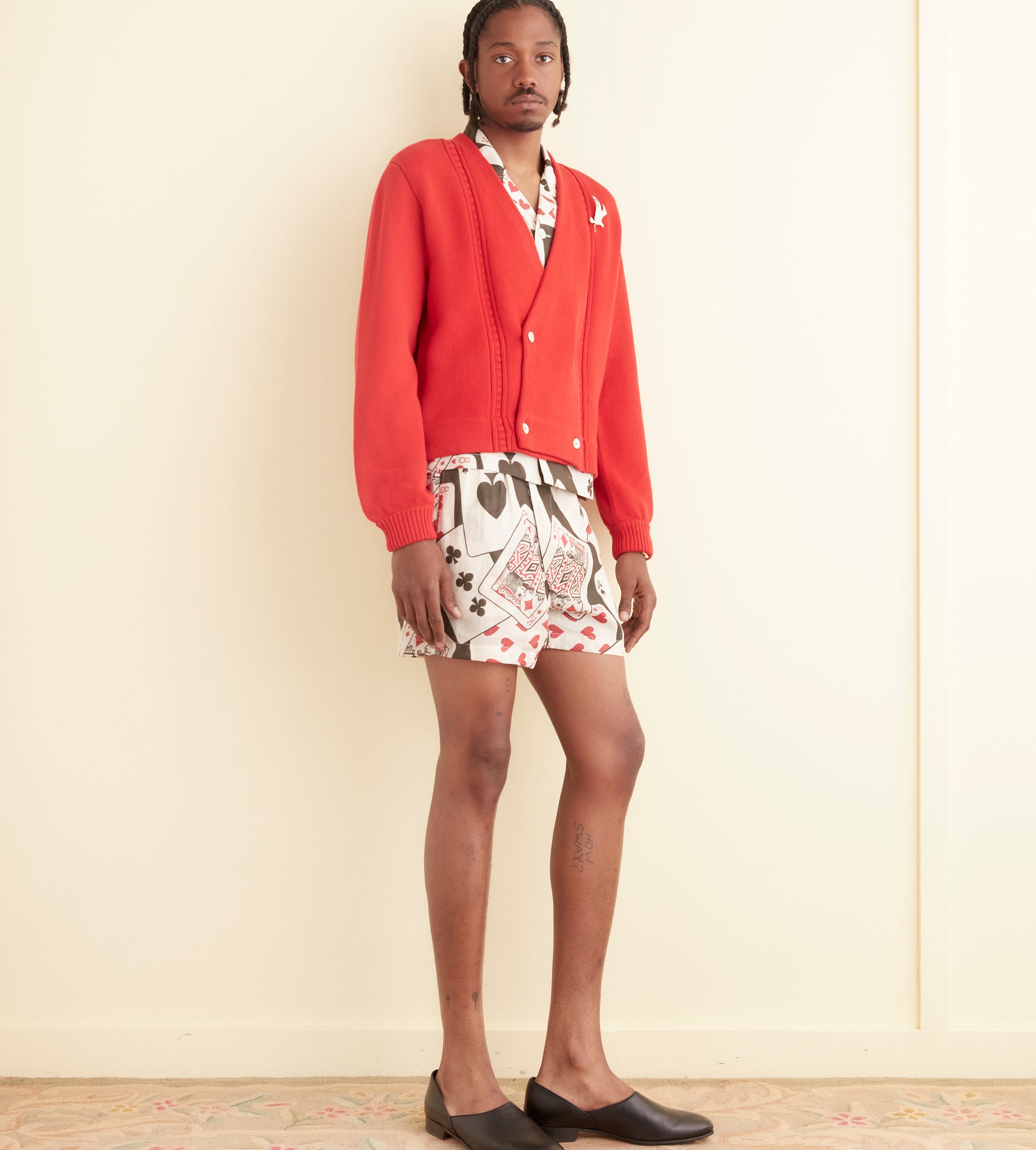These boxers are inspired by a costume from the 1920s, which featured this all-over card motif. We recreated the pattern for this style.