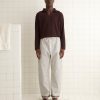 These trousers are inspired by men’s suit pants from the 1950s-1960s. We reproduced the silhouette for this style. The trousers have a satin tuxedo stripe and satin-covered buttons.