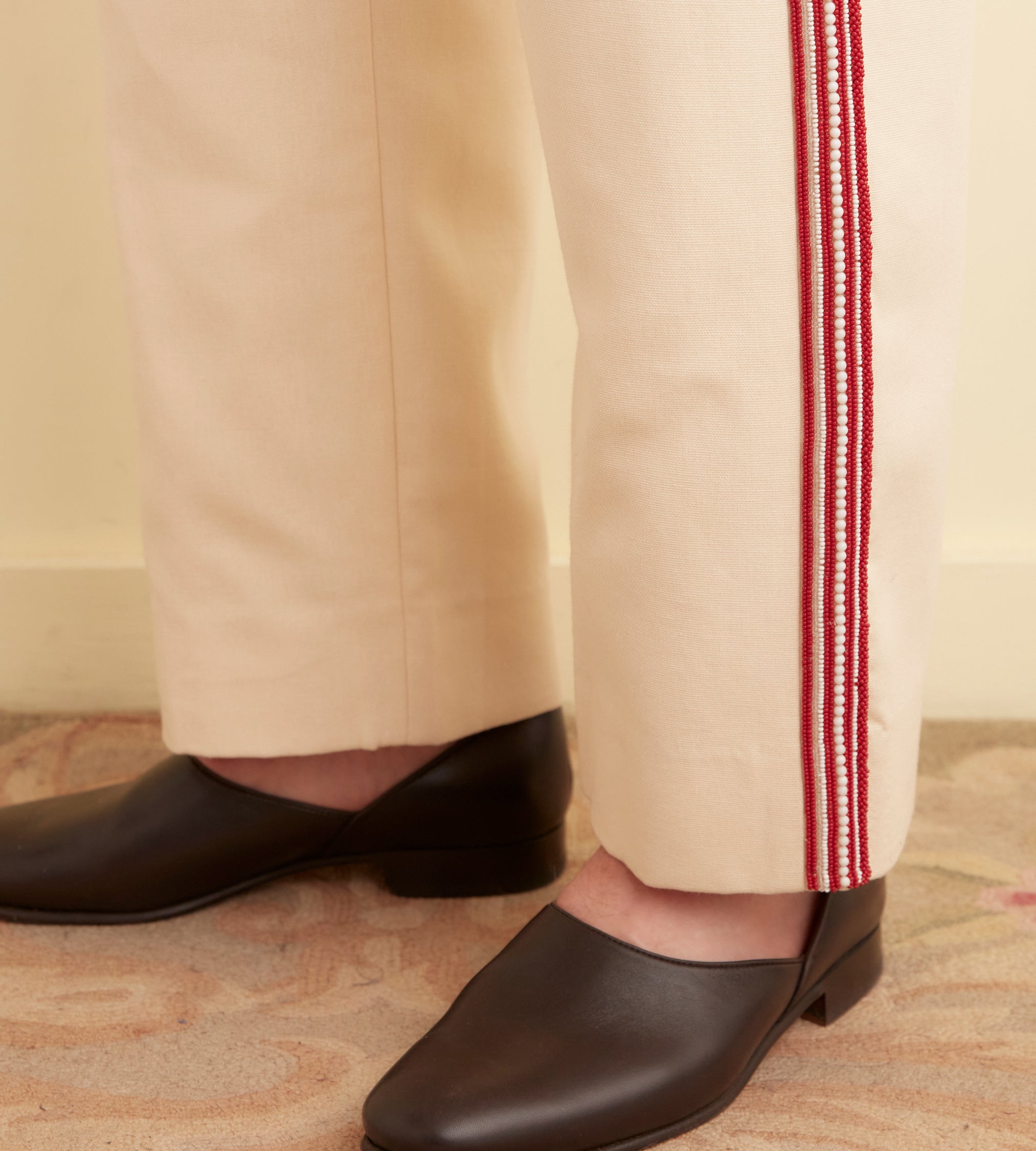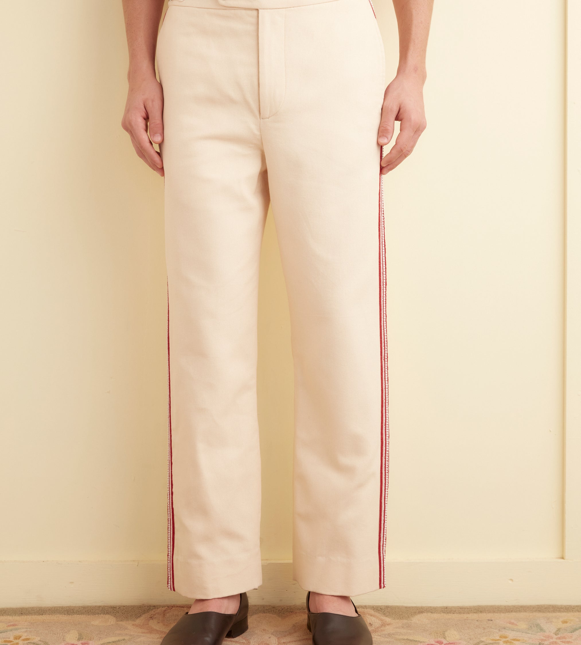 BODE Men’s Ready To Wear Beaded Stria Trousers | Cream