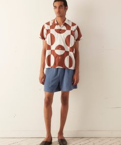This short-sleeve shirt is inspired by a quilt top from circa 1890s. This style represents a historical reproduction of the “Robbing Peter to Pay Paul” quilt block, which rose to popularity in the mid-19th century.