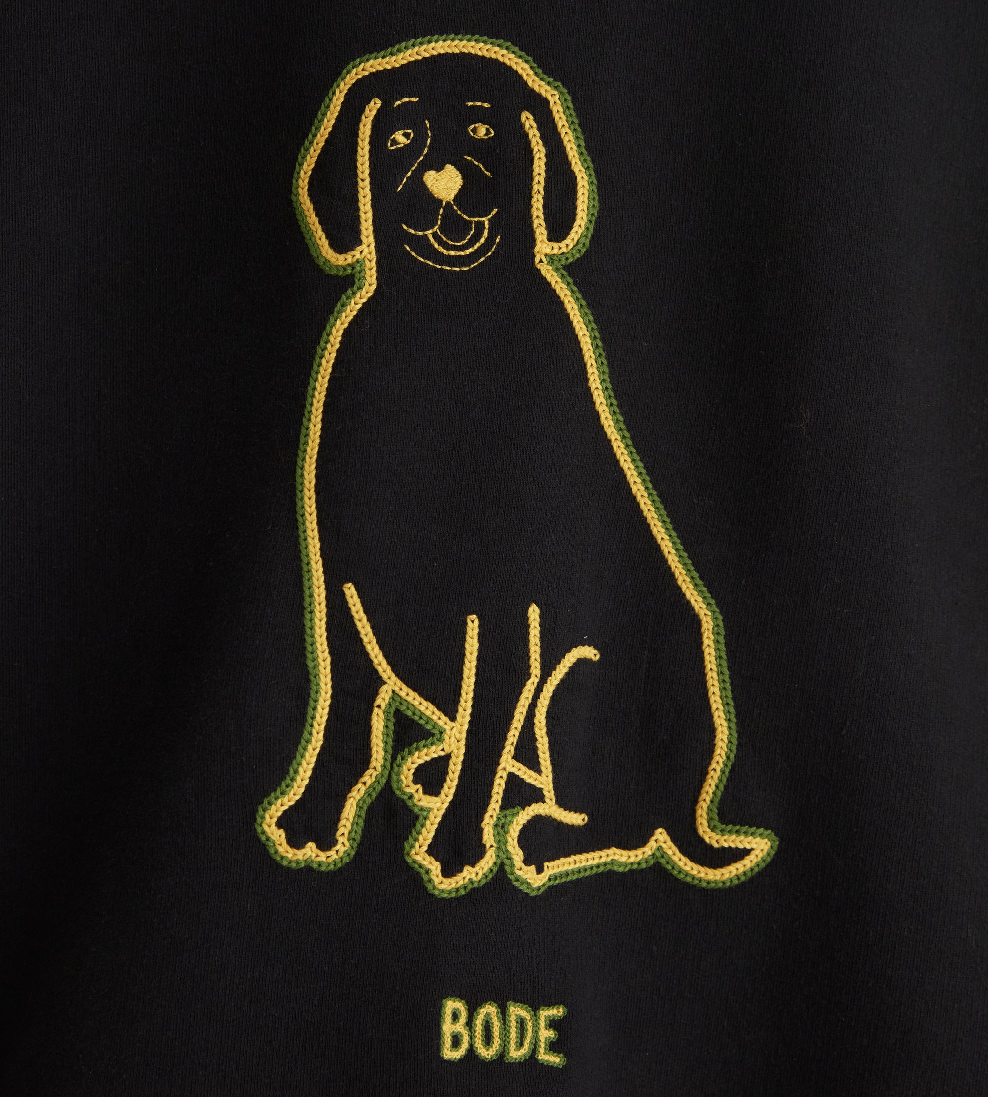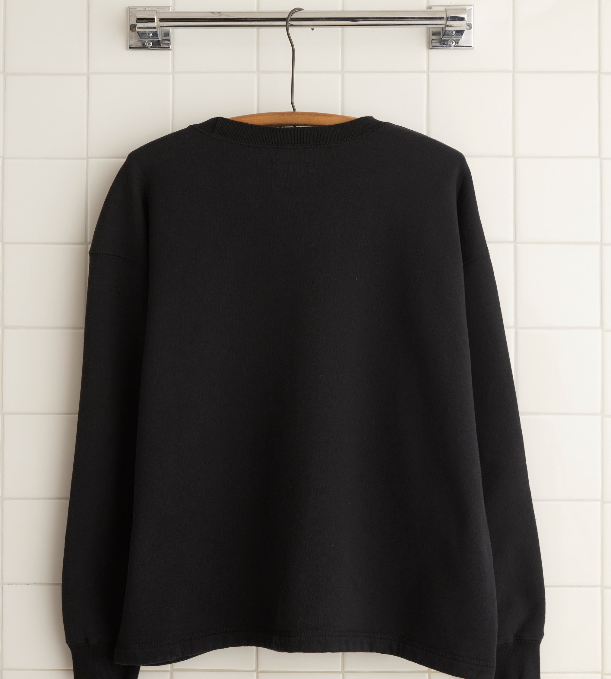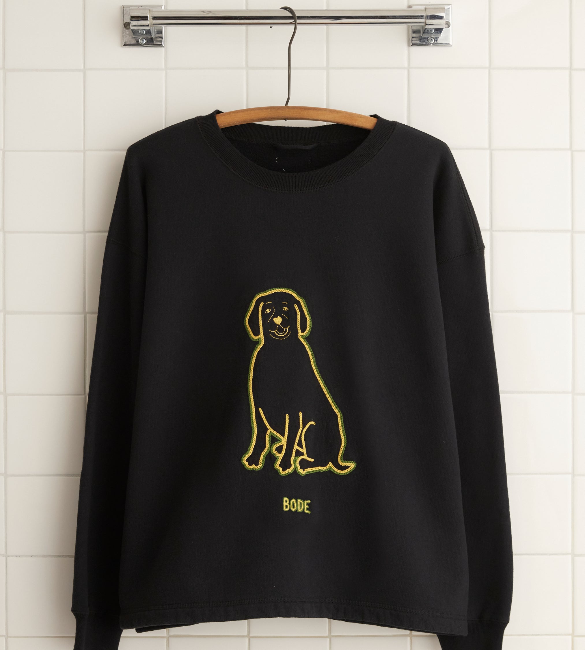 This sweatshirt is inspired by a 1940s T-shirt. The original design was hand-drawn, but it has been faithfully reproduced here with chain-stitch embroidery.