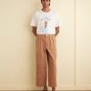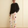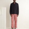 These trousers are inspired by a 1920s pillowcase. We reproduced the fabric, with its pink trim embroidered with a geometric fern pattern, for this style.