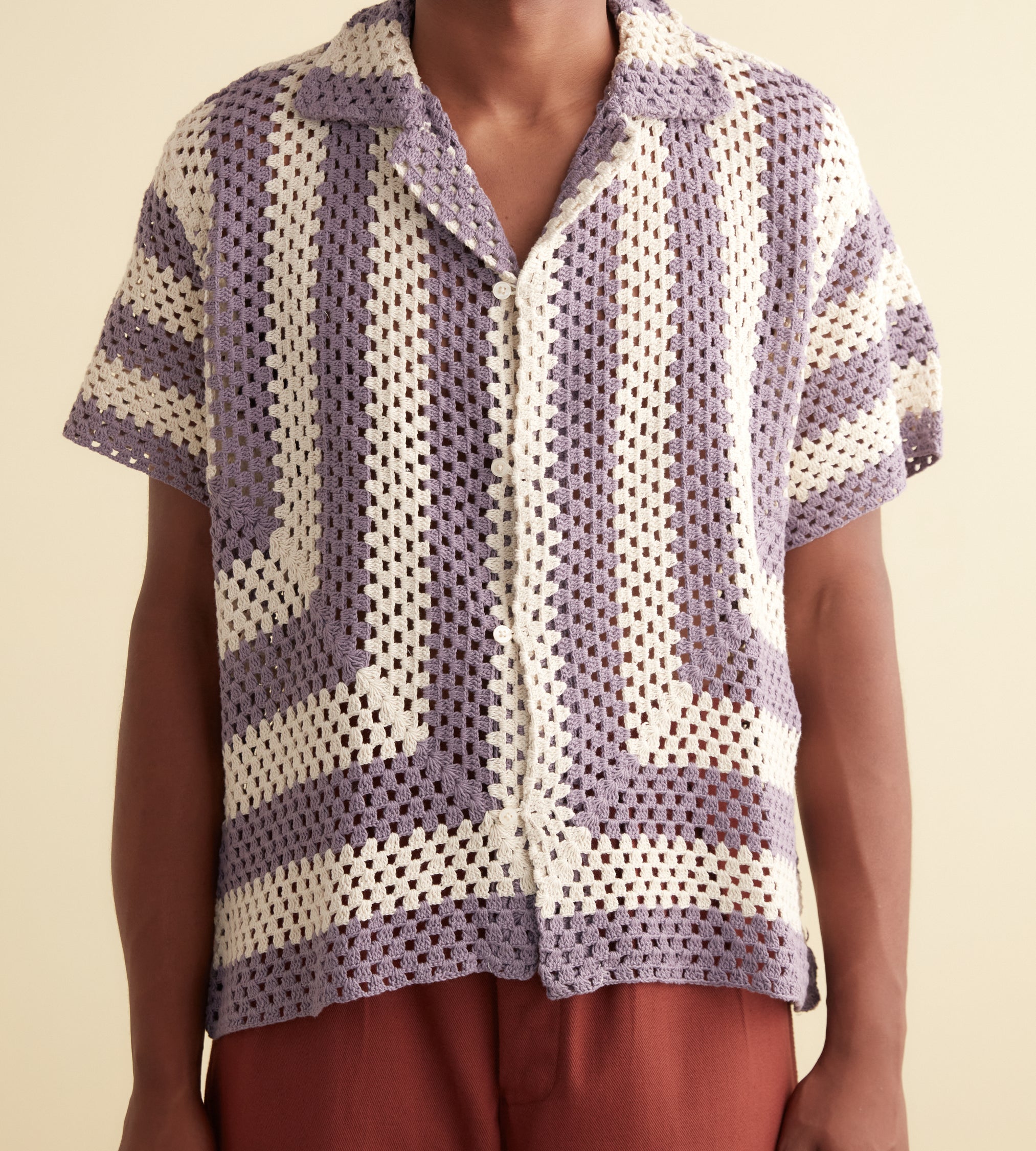 BODE Men’s Ready To Wear Flagship Crochet Shirt – Lavender