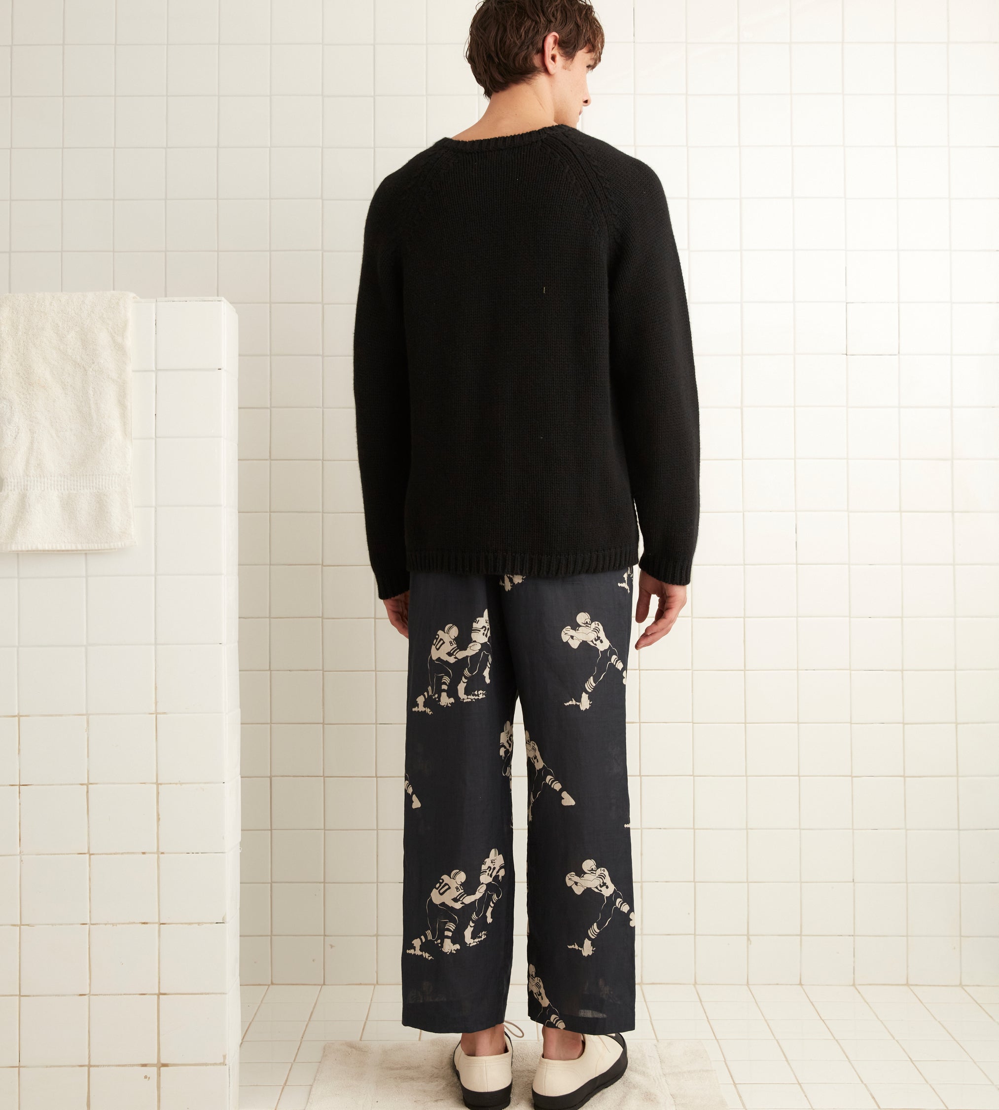 BODE Men’s Ready To Wear Football Silhouette Pajama Pants – Black/cream | Black & Cream