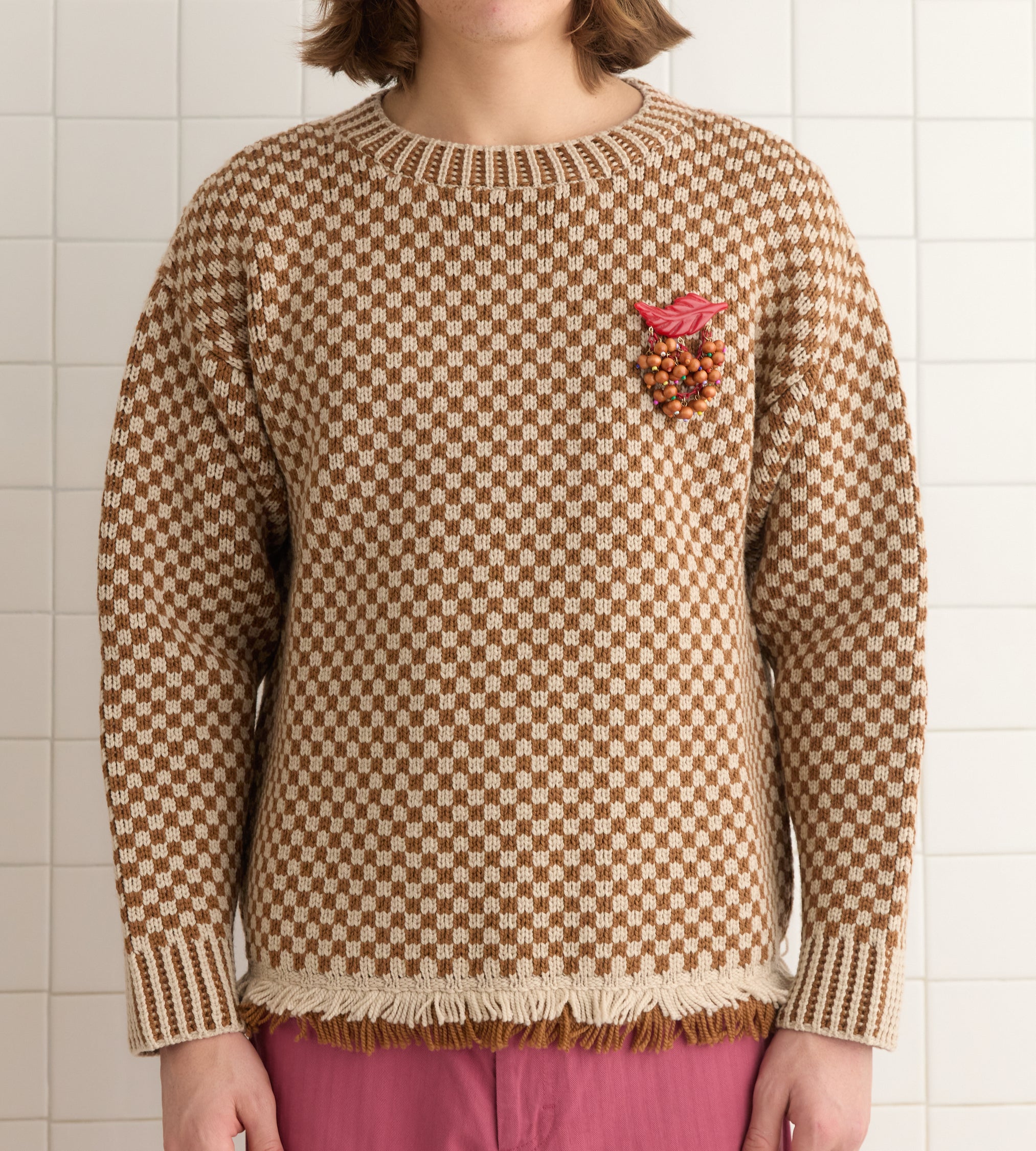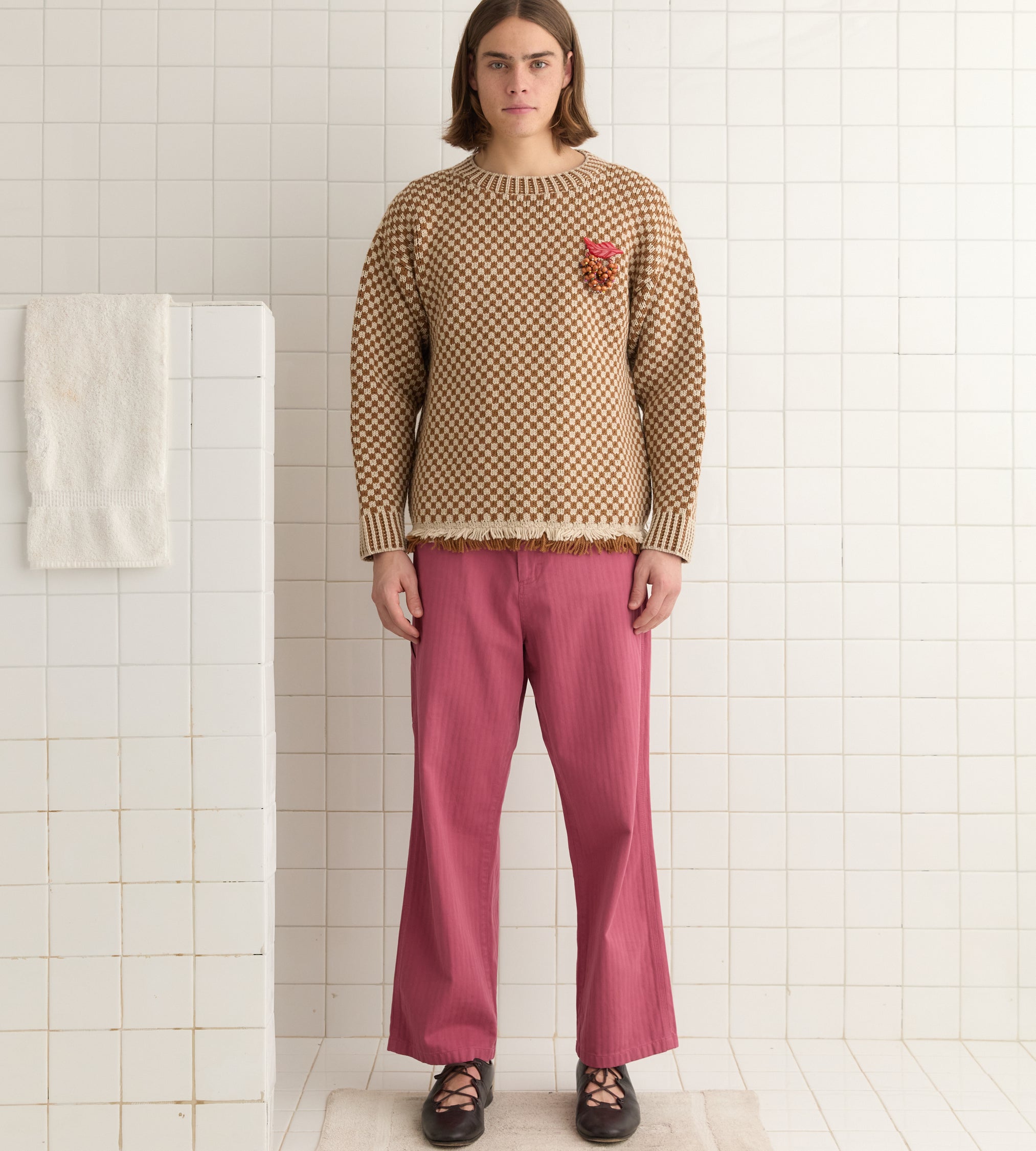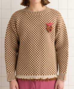 BODE Men’s Ready To Wear Fringe Check Pullover – Brown