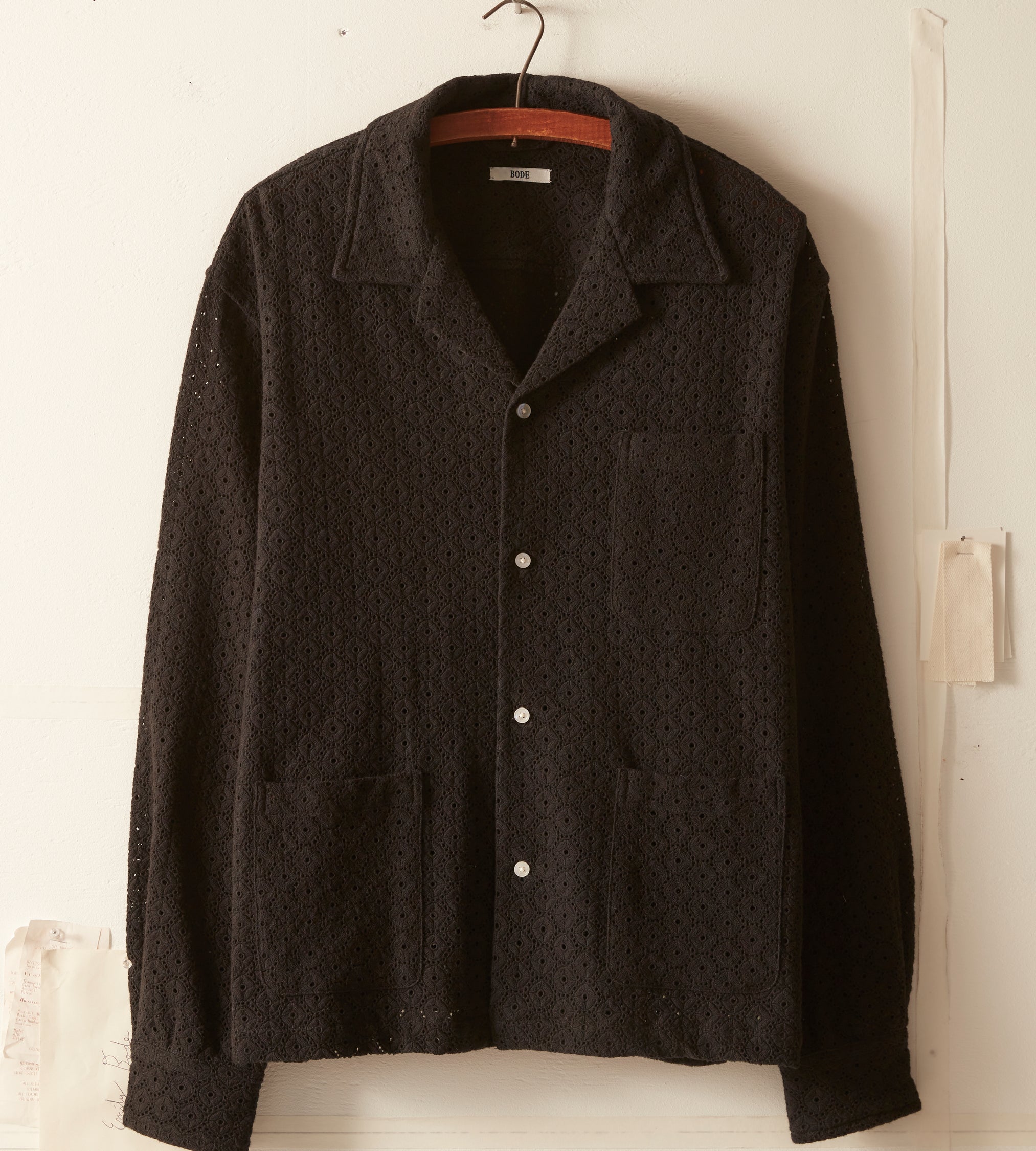 BODE Men’s Ready To Wear Geo Lace Overshirt – Black