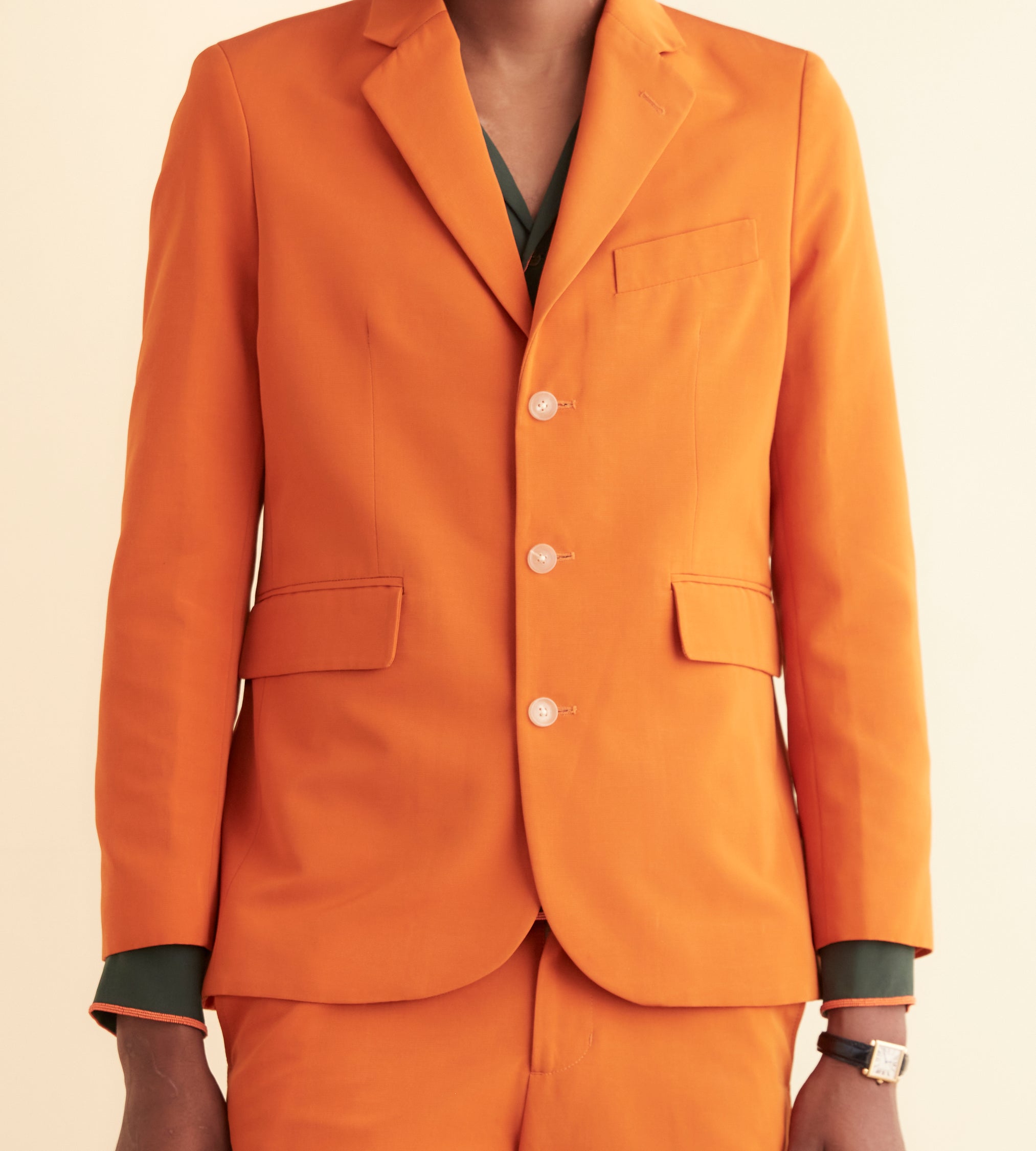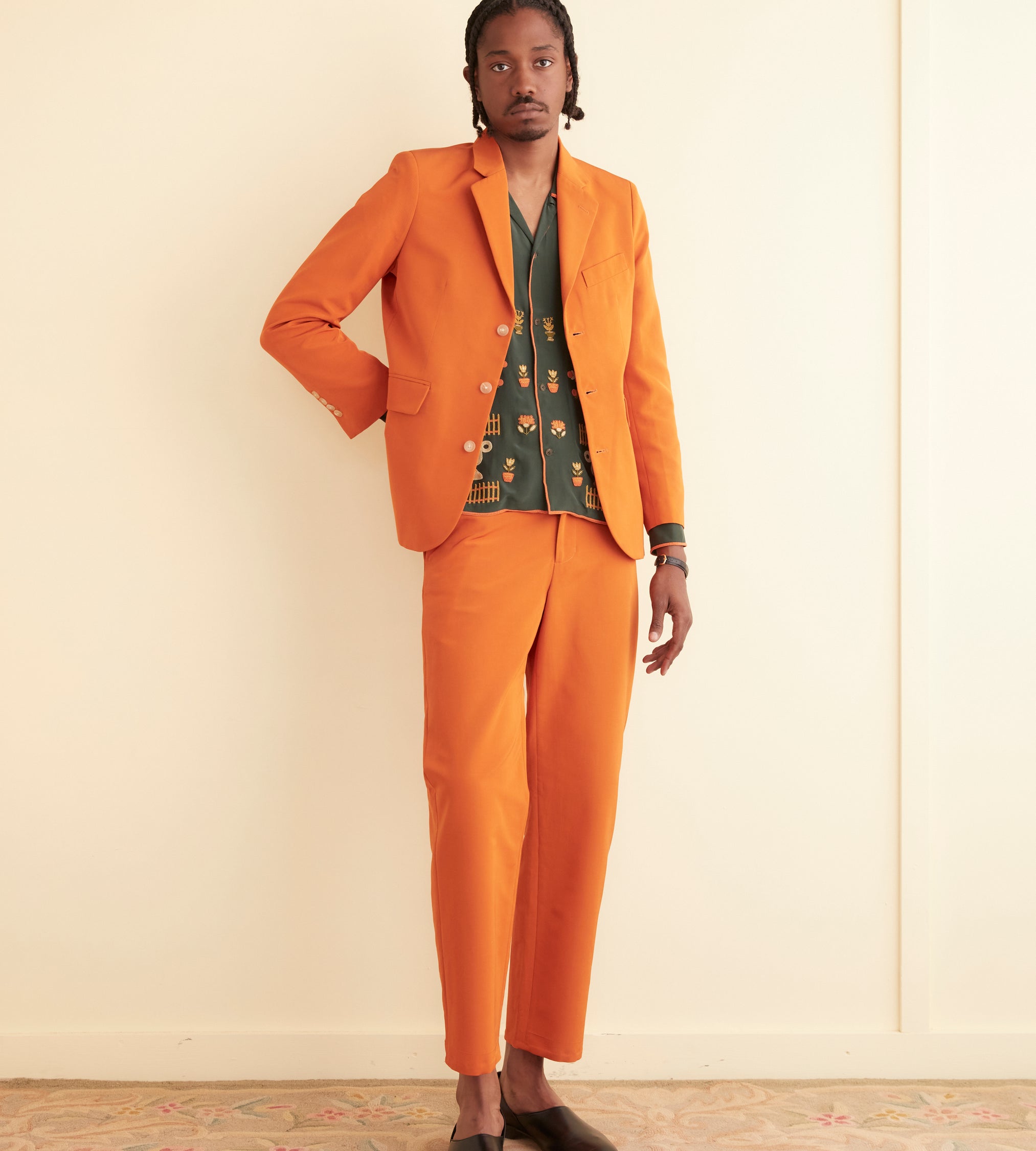 BODE Men’s Ready To Wear Ginger Faille Single-breasted Suit Jacket | Orange