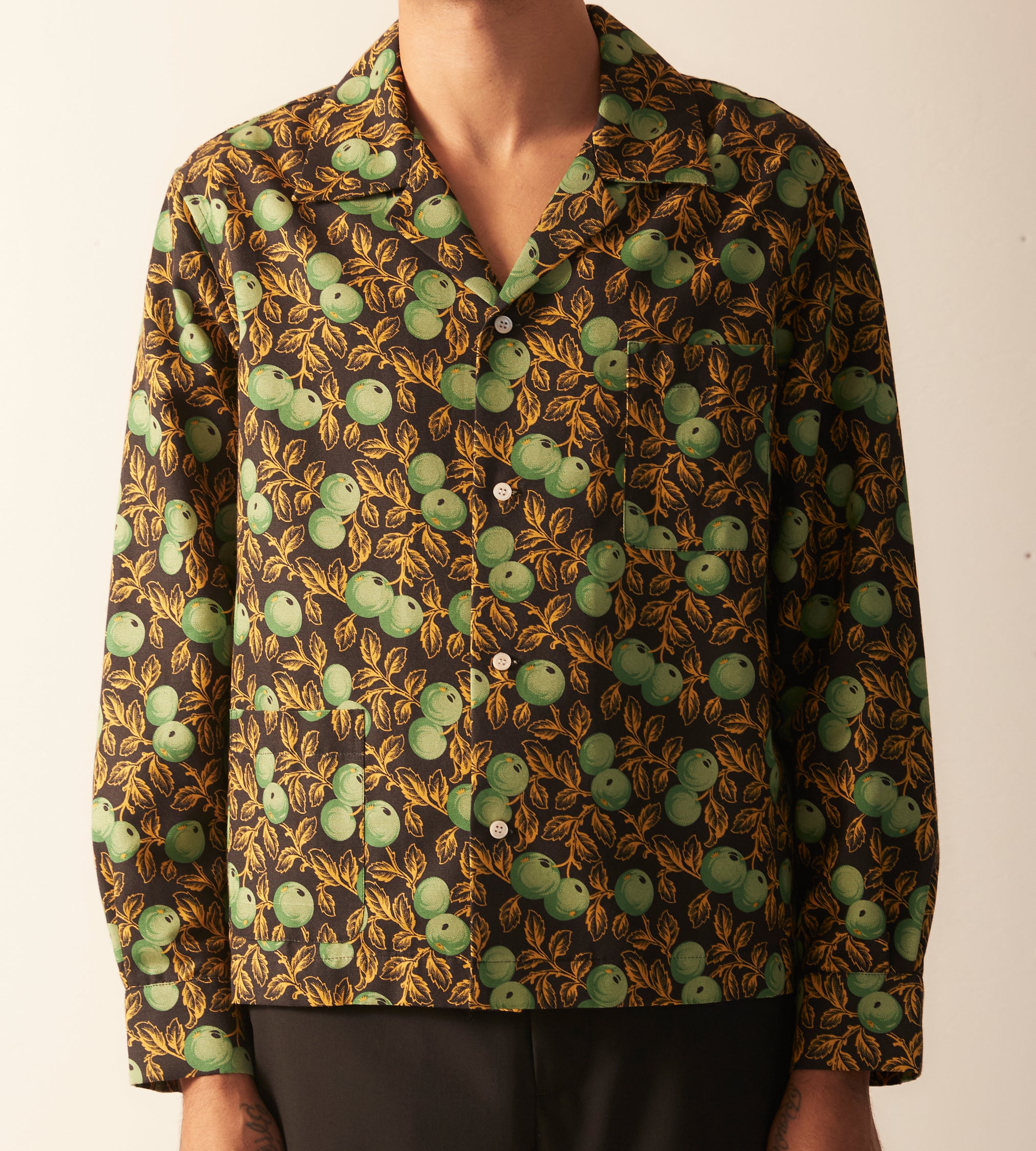 This Long Sleeve shirt is inspired by a textile salesman’s swatch circa the 19th century. The original fabric was made and printed in England for the Indian market under trade practices that prioritized importing English textiles over domestically produced Indian cotton. The pattern was faithfully reproduced from a small swatch.