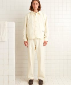 This jacket is inspired by a workwear jacket from the 1960s. We reproduced the silhouette for this style. The jacket features “Knolly Brook, a Bode Product” tags inspired by classic workwear labels.