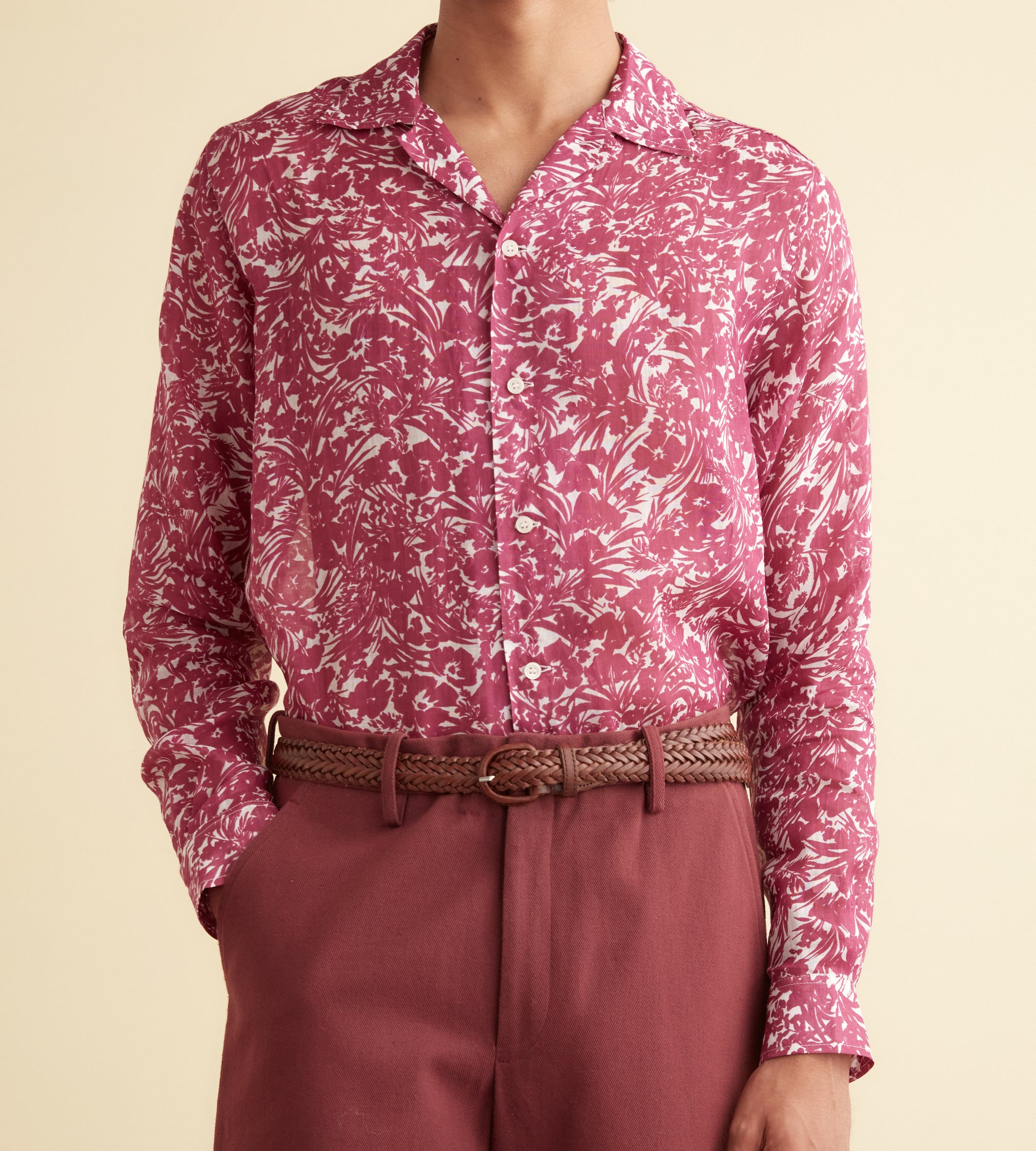BODE Men’s Ready To Wear Hibiscus Spray Long Sleeve Shirt | Maroon