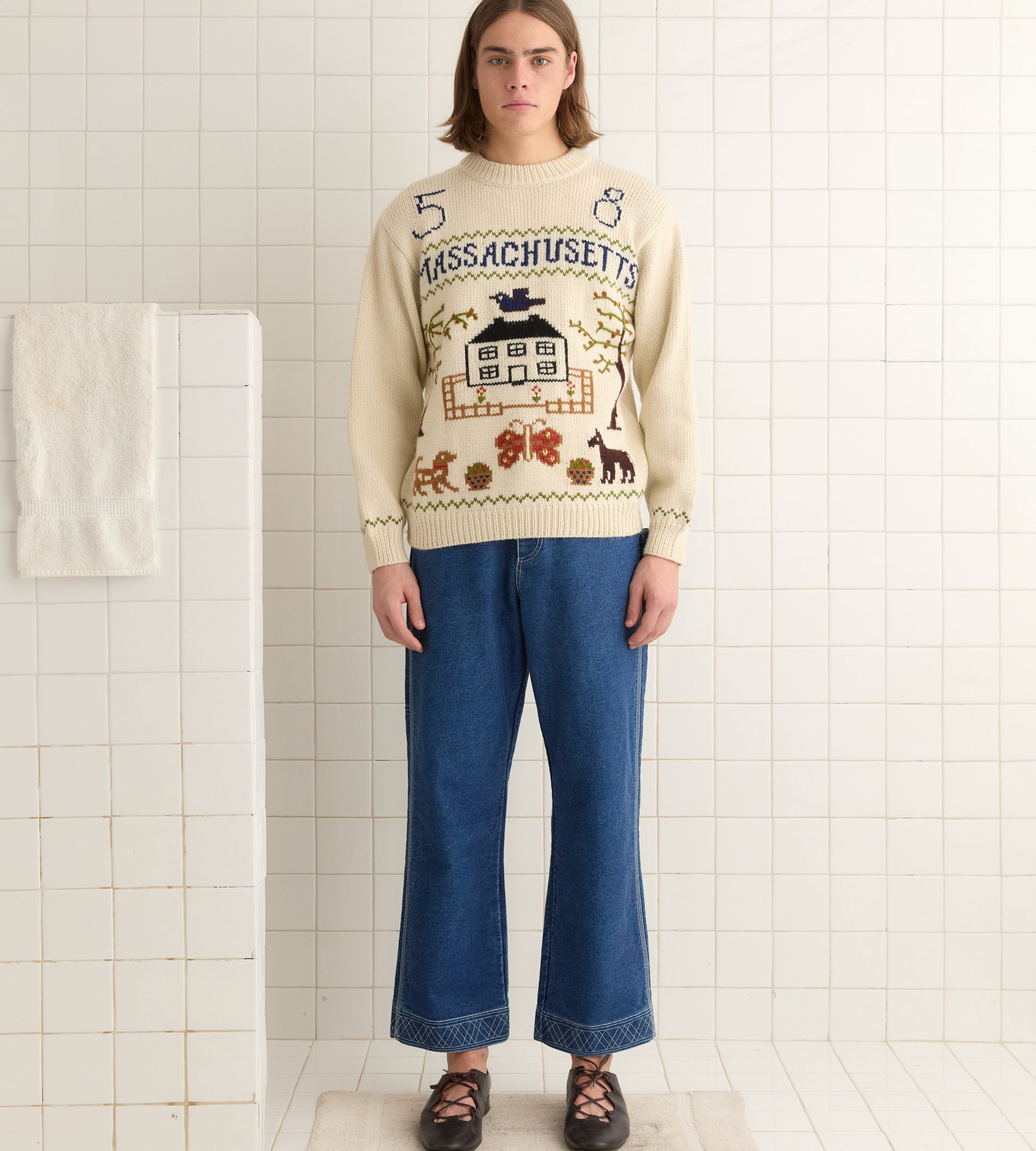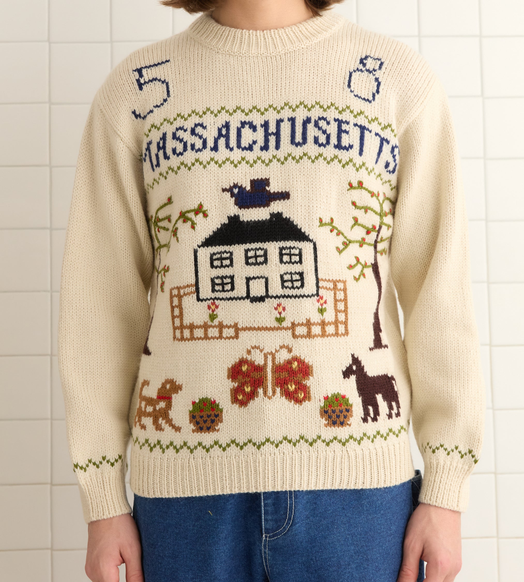 BODE Men’s Ready To Wear Homestead Sampler Sweater | Cream