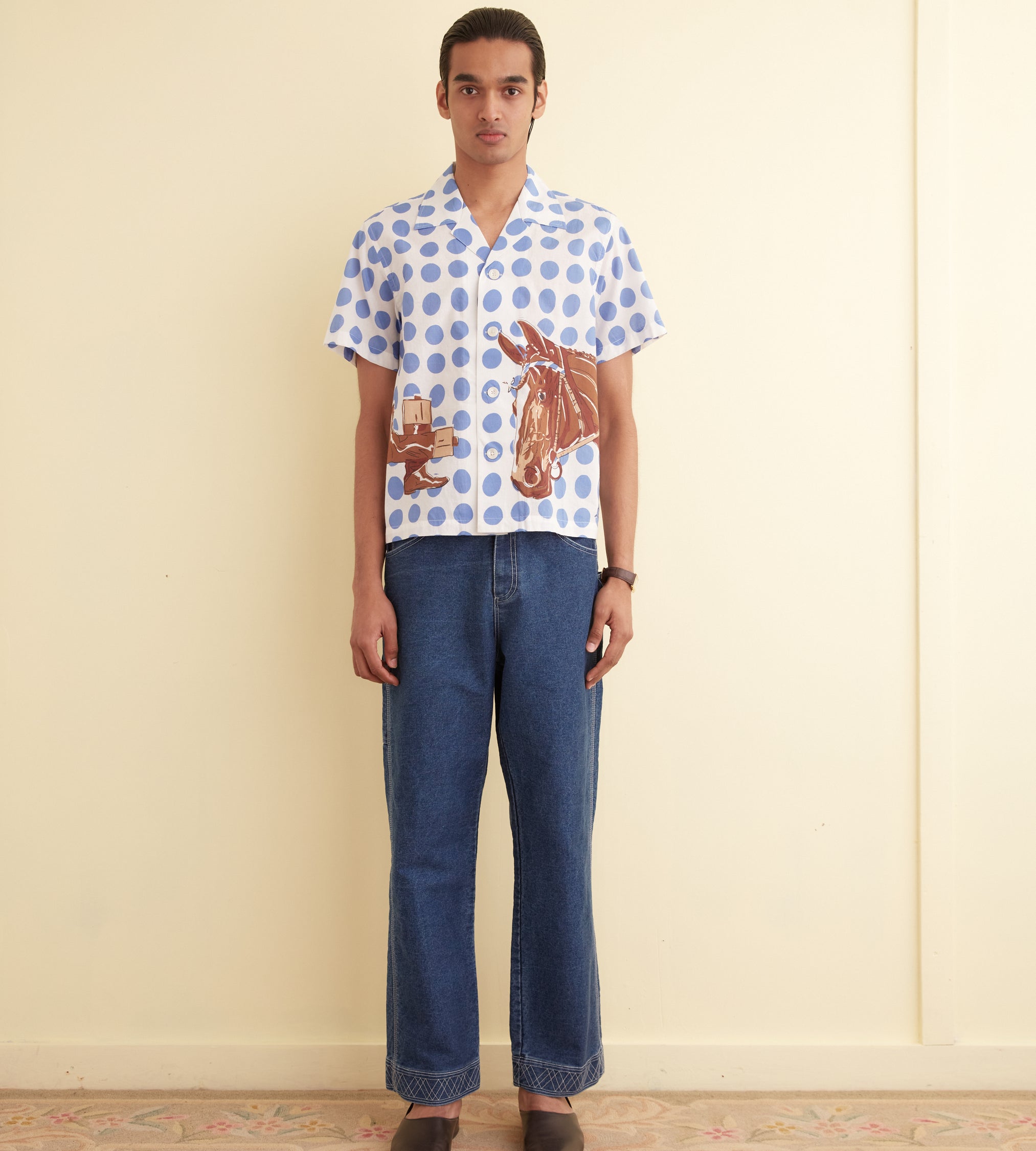 BODE Men’s Ready To Wear Jockey Dot Short Sleeve Shirt | Blue