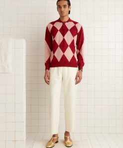 This knit polo is inspired by vintage jockey silks. We reproduced the argyle pattern for this style in a lightweight lurex yarn.