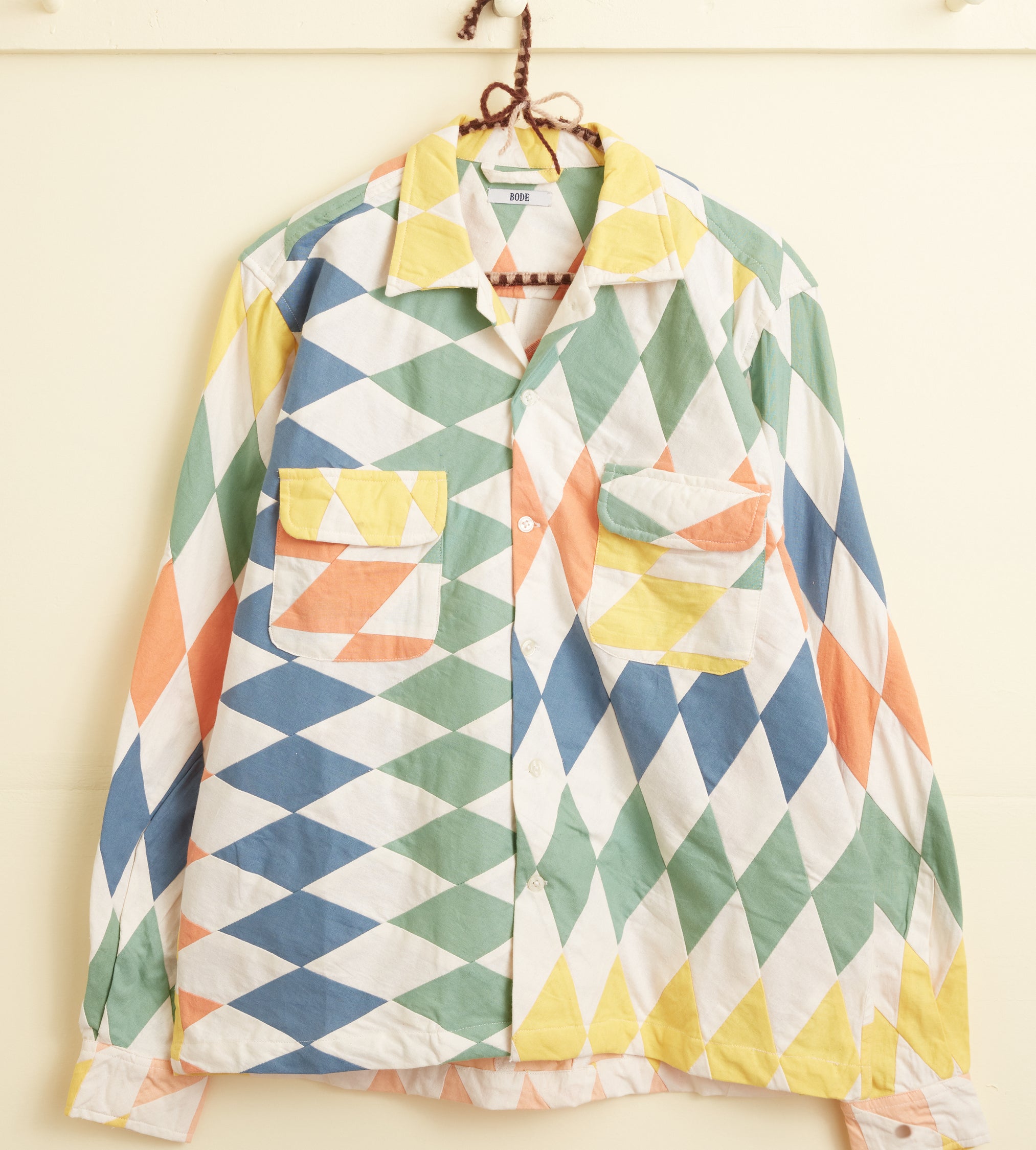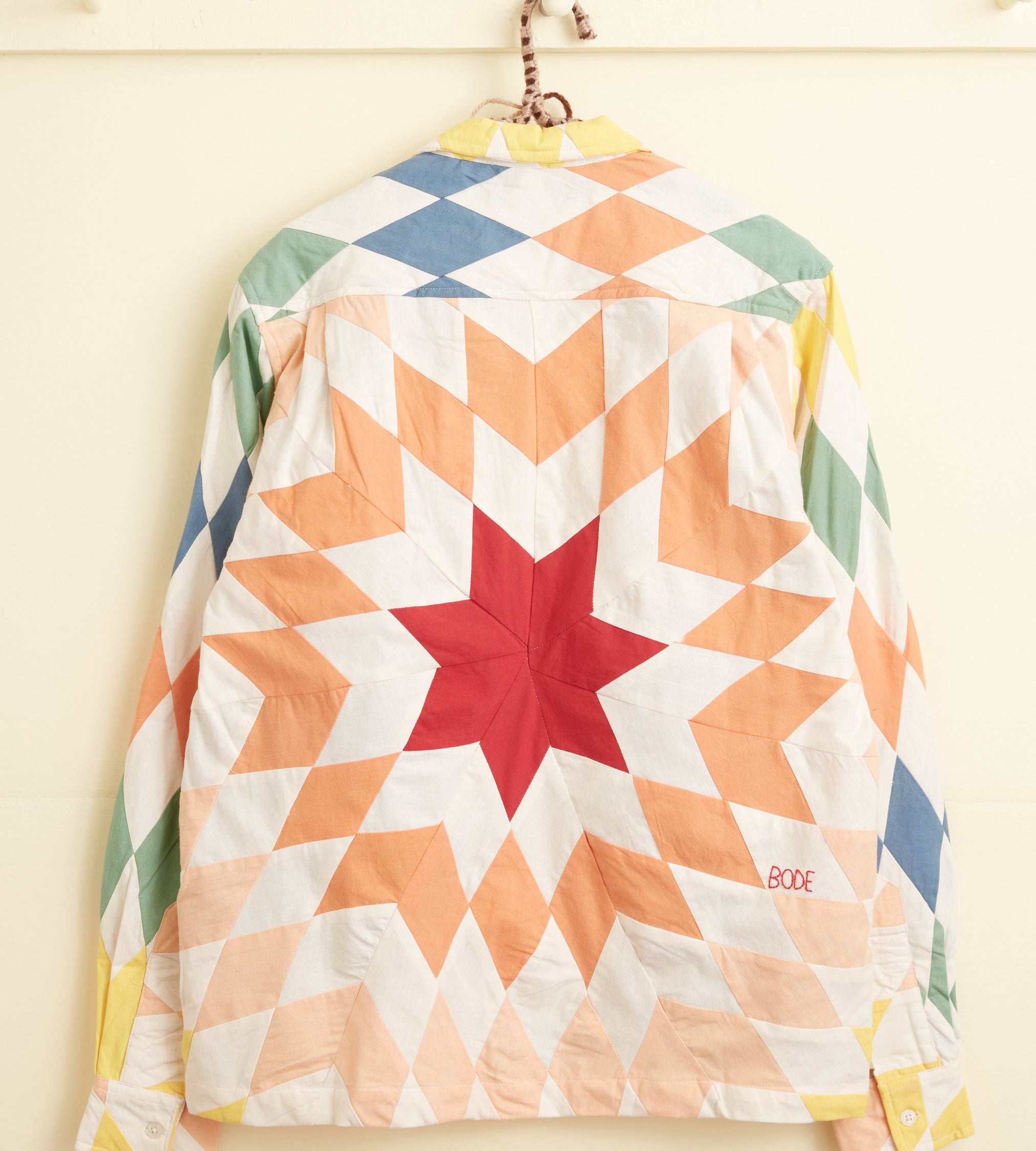This shirt is inspired by a Lonestar quilt from the 19th century. The Lonestar pattern is one of the most recognizable US quilts.
