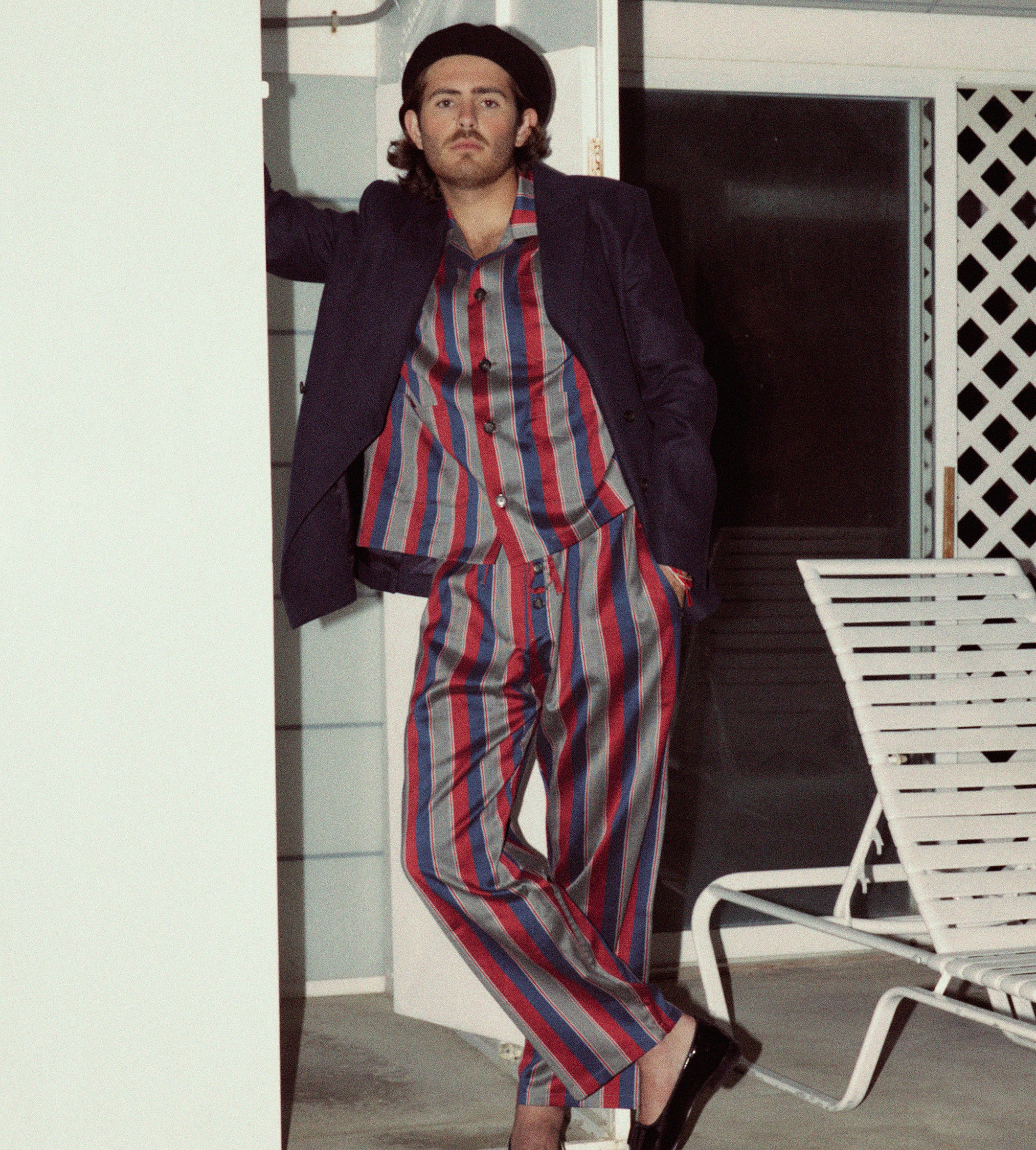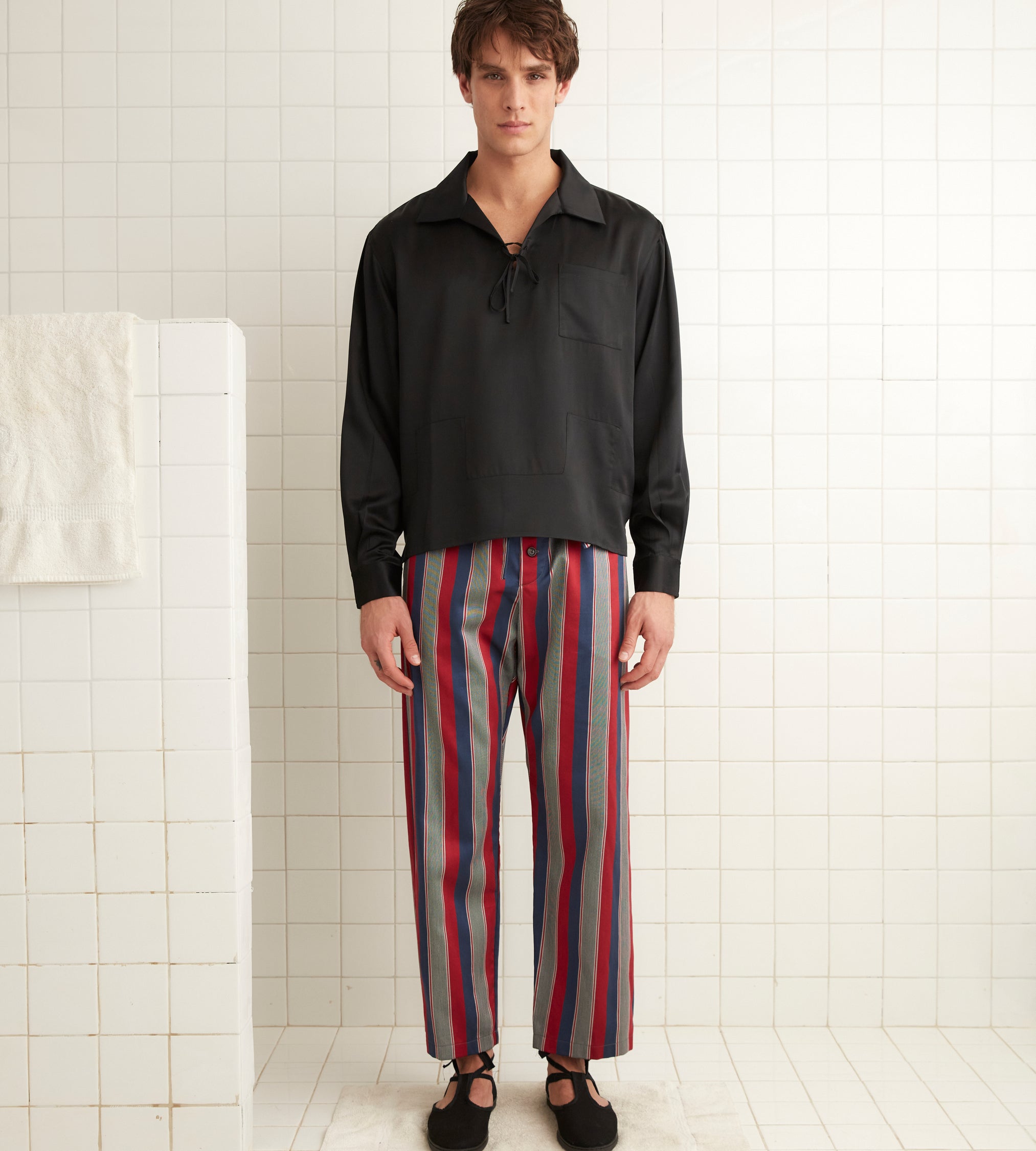 These pajama pants are inspired by 1960s necktie yardage. We reproduced the fabric for this style, which is cut according to a classic pajama silhouette.