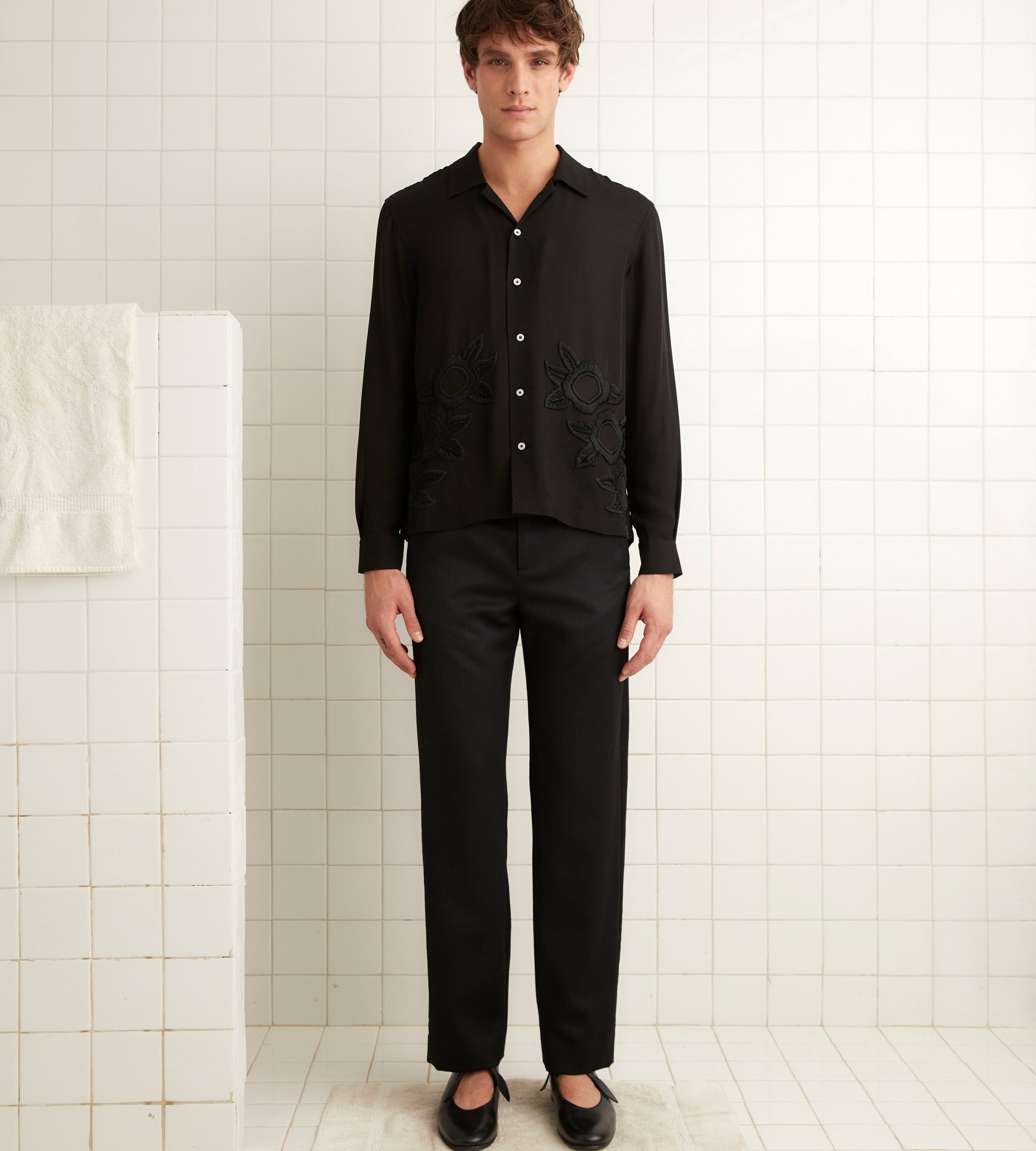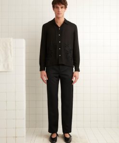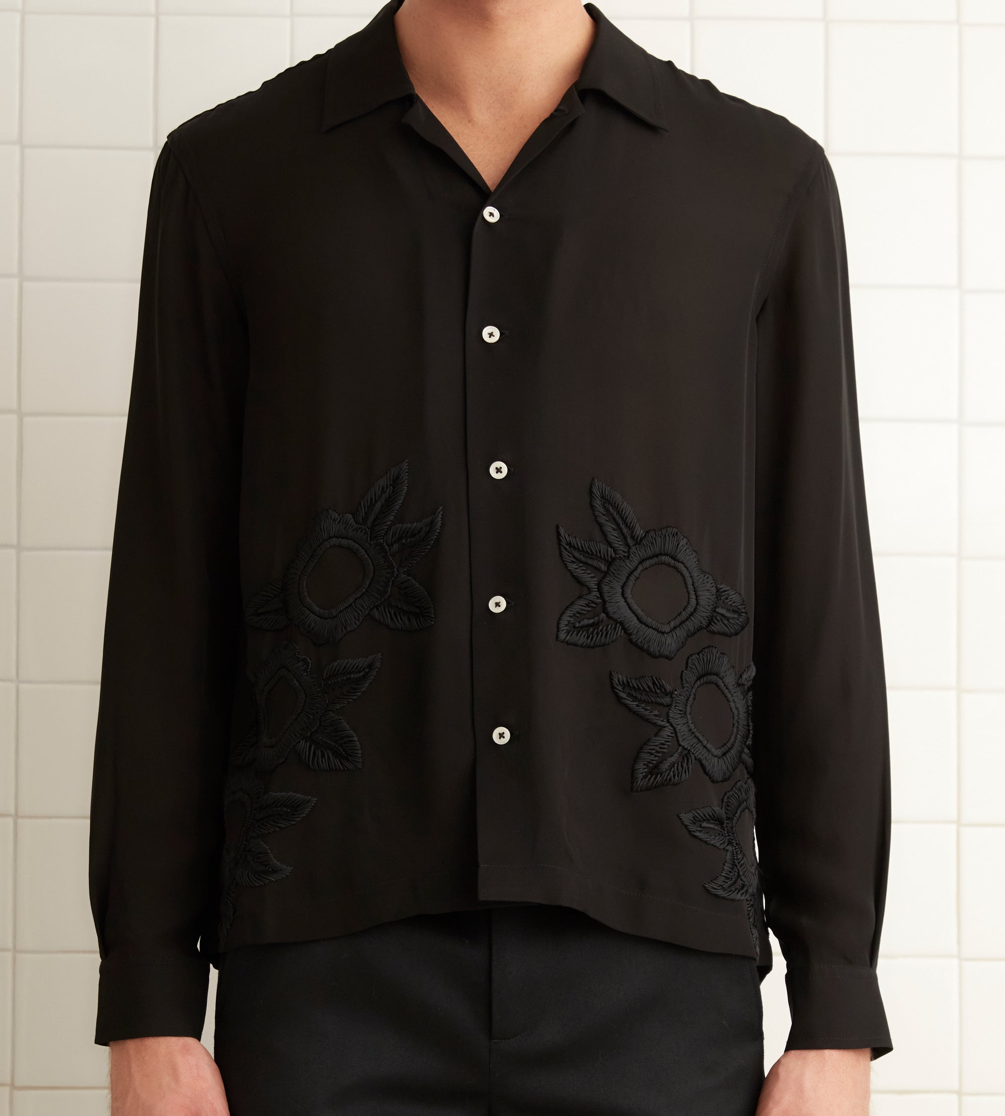 BODE Men’s Ready To Wear Midnight Daffodil Long Sleeve Shirt | Black