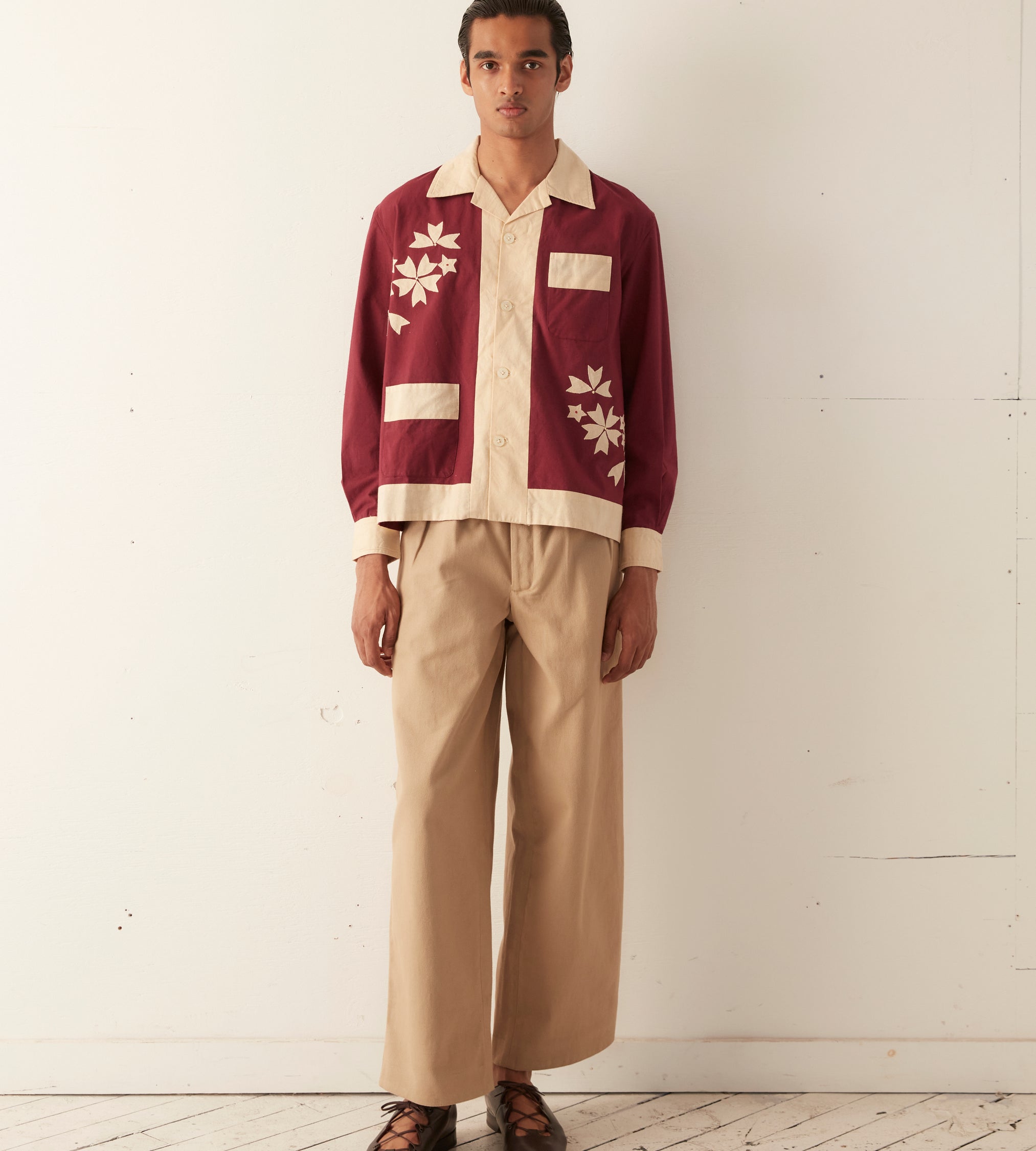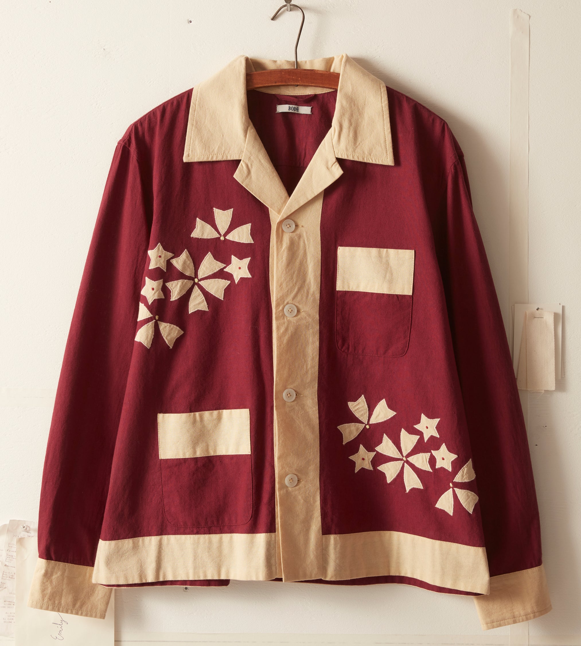 BODE Men’s Ready To Wear Moonflower Appliqué Long Sleeve Shirt