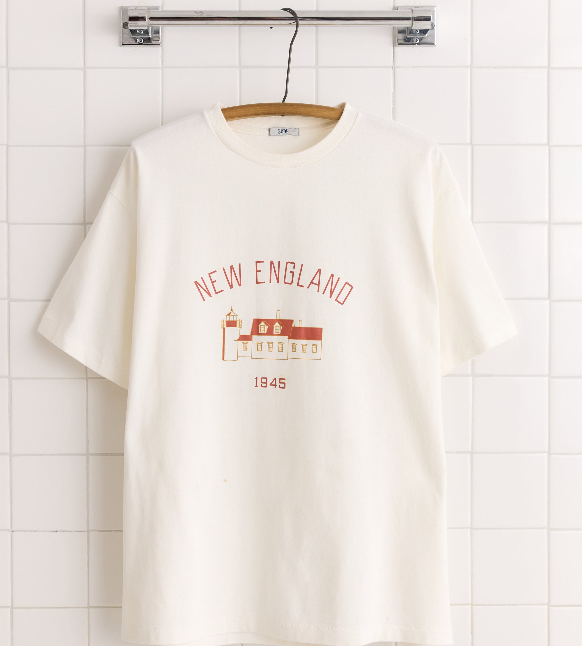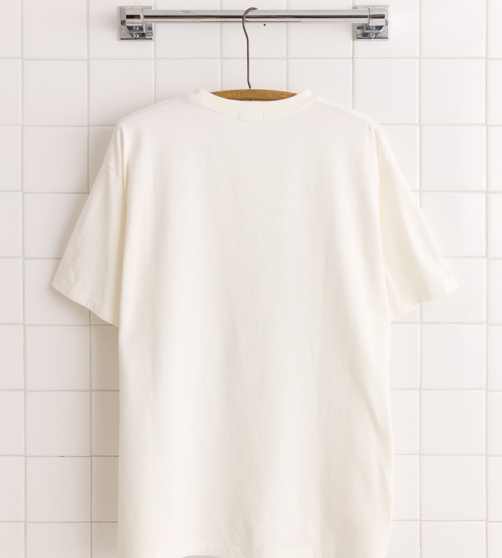 This style is inspired by souvenir tees from the 1940s. Tees and sweatshirts made for soldiers and sailors during the Second World War were some of the first mass-produced screen-printed garments.