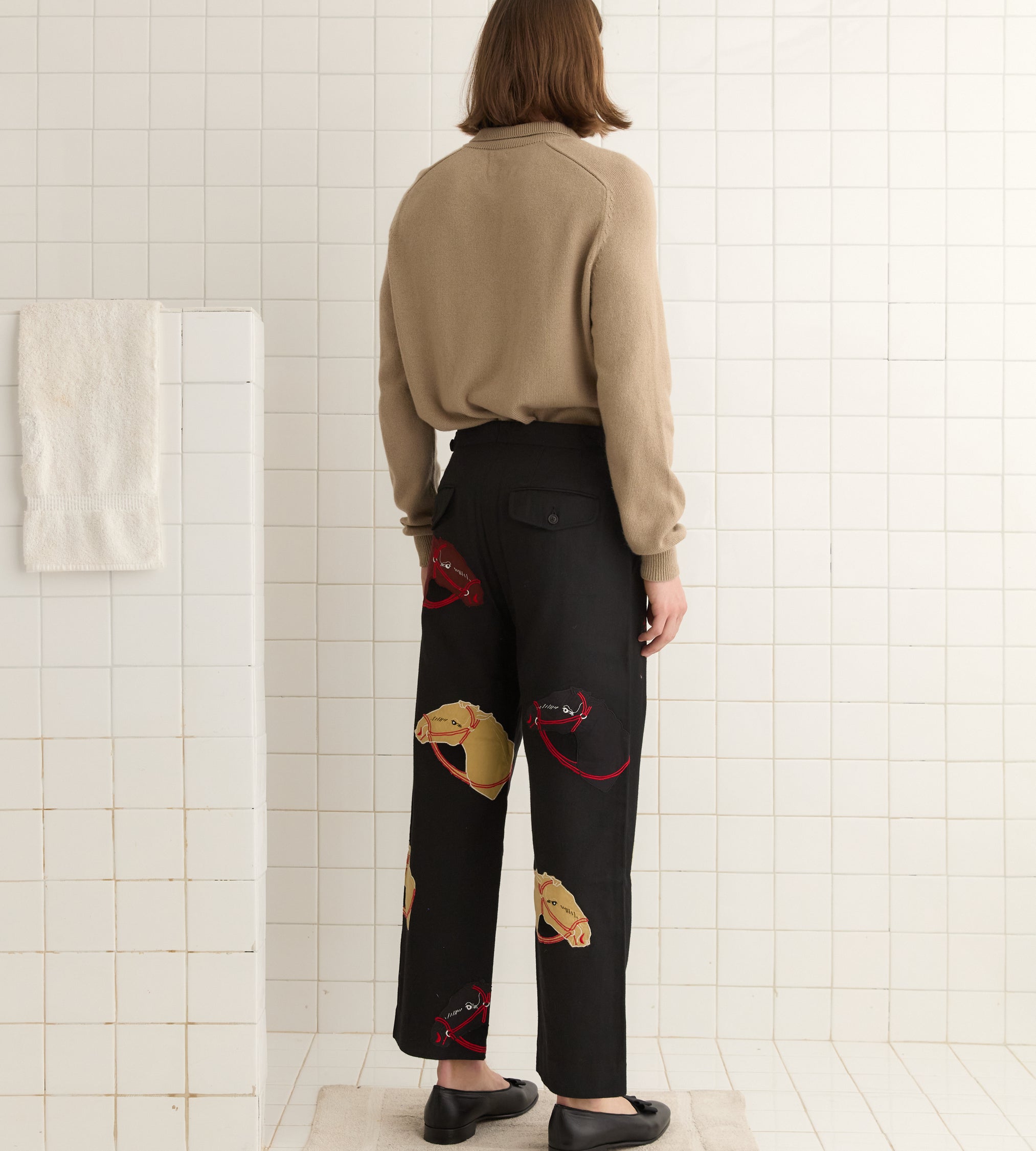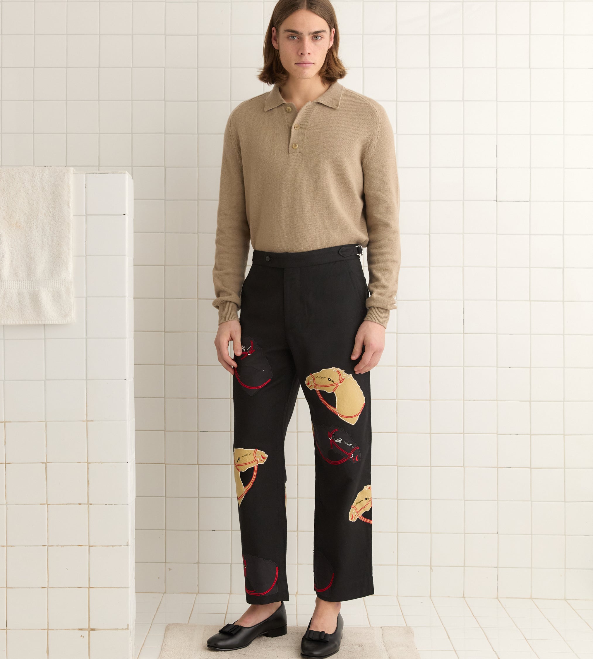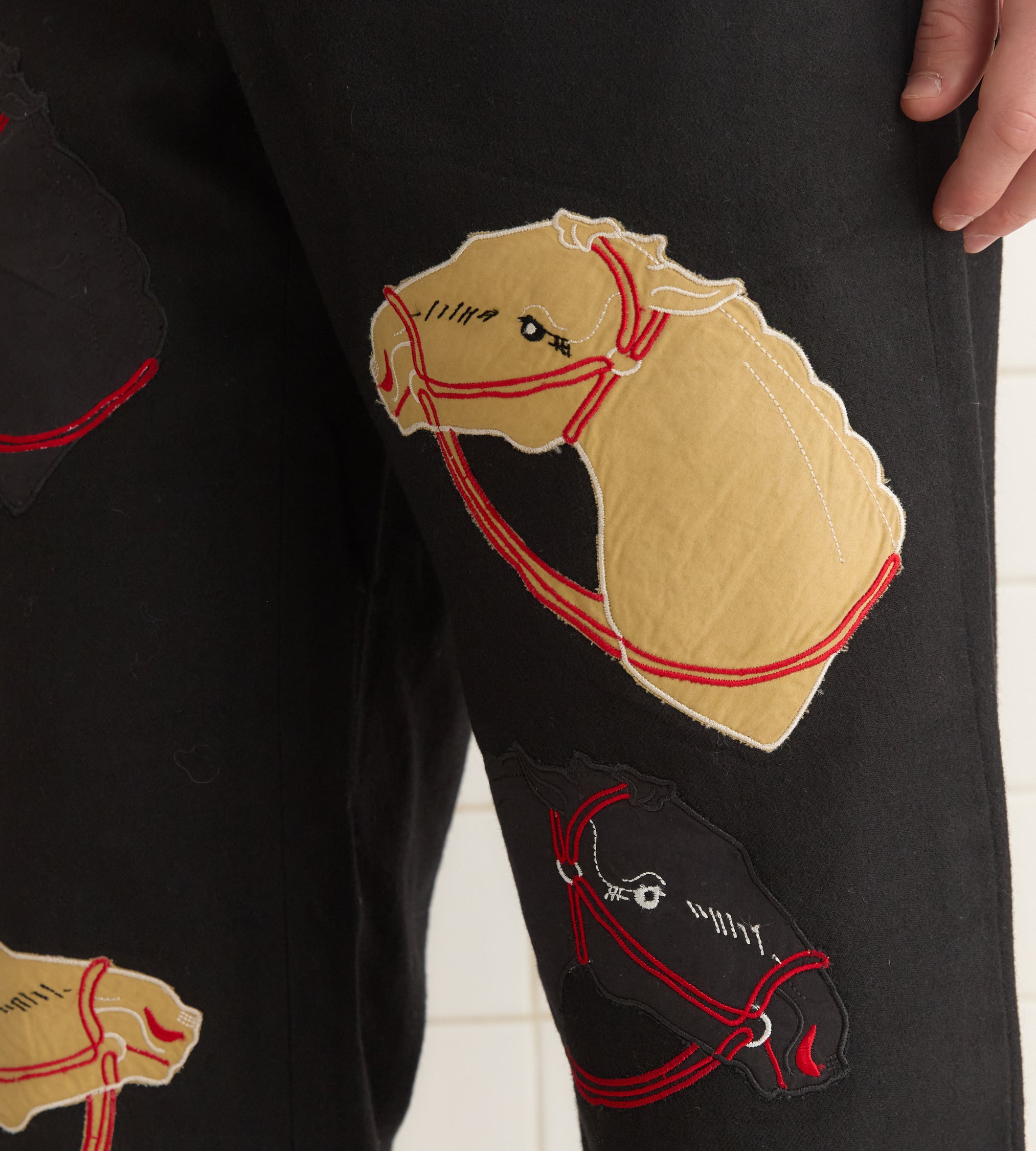 BODE Men’s Ready To Wear Pony Appliqué Trousers – Black | Black