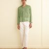 This shirt is inspired by a tunic from the 1900s-1920s, which featured this contrast collar and blue-and-black running stitches along the hem. We reproduced the details of the original piece on this long-sleeved shirt.