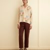 This shirt is inspired by a handkerchief from the 1940s, which was patterned with crests. We reproduced the pattern for this style with illustrations of skiing destinations.
