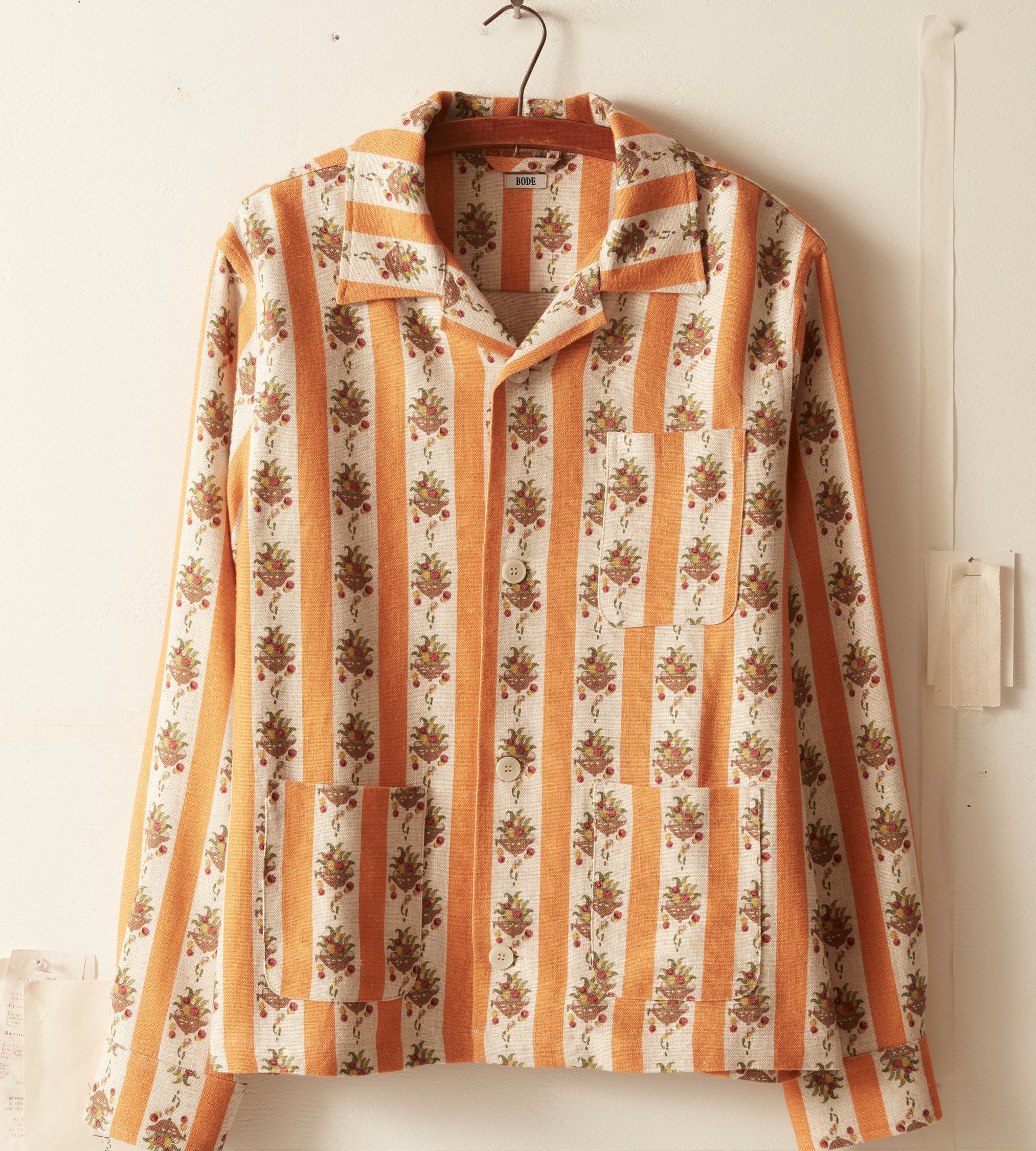 BODE Men’s Ready To Wear Striped Fruit Bowl Long Sleeve Shirt | Orange