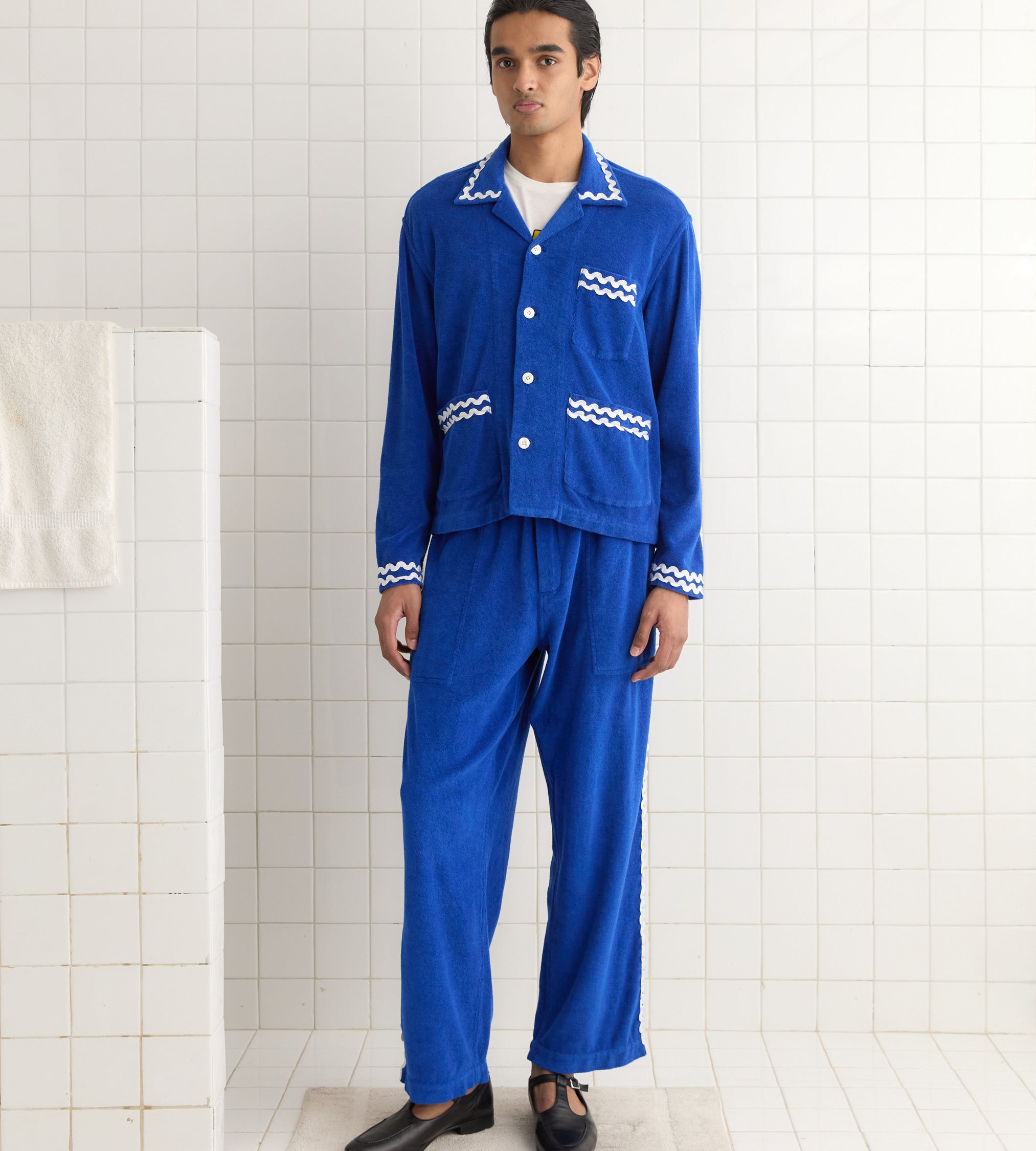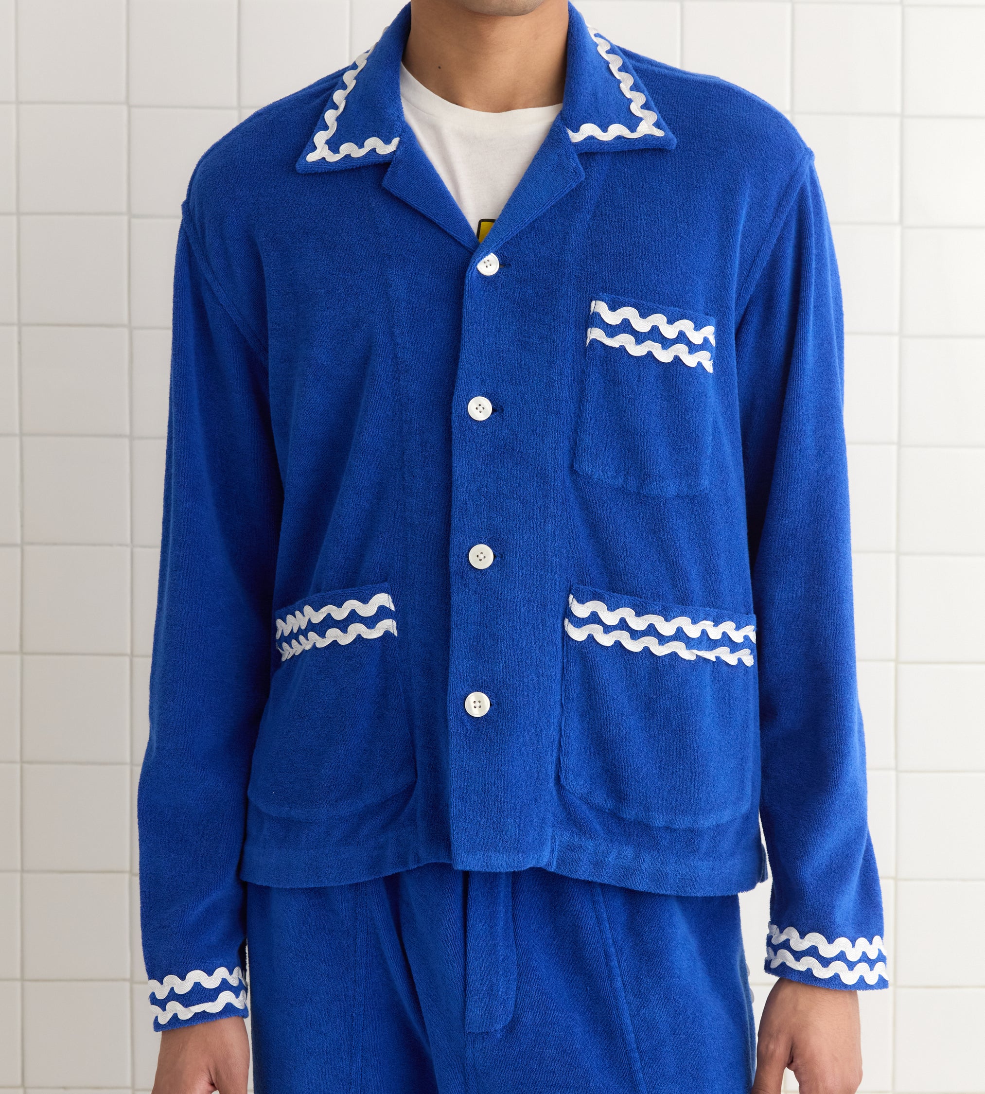 BODE Men’s Ready To Wear Terry Trim Overshirt | Blue