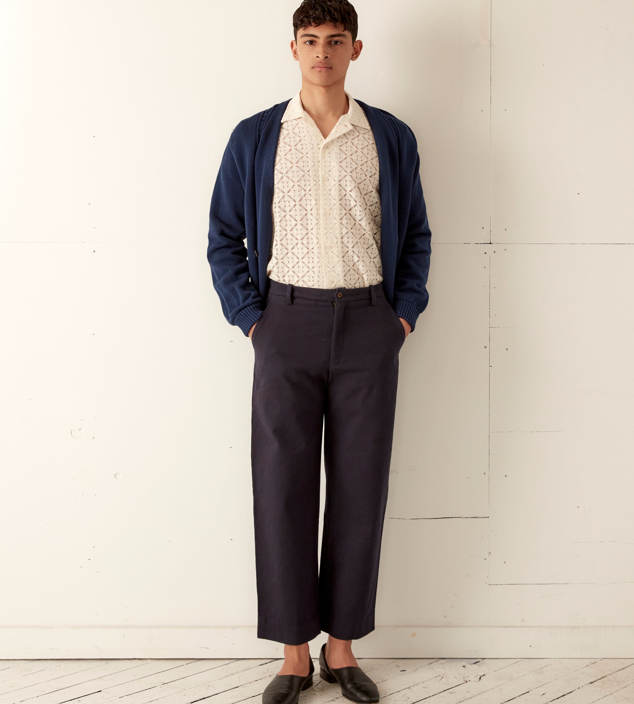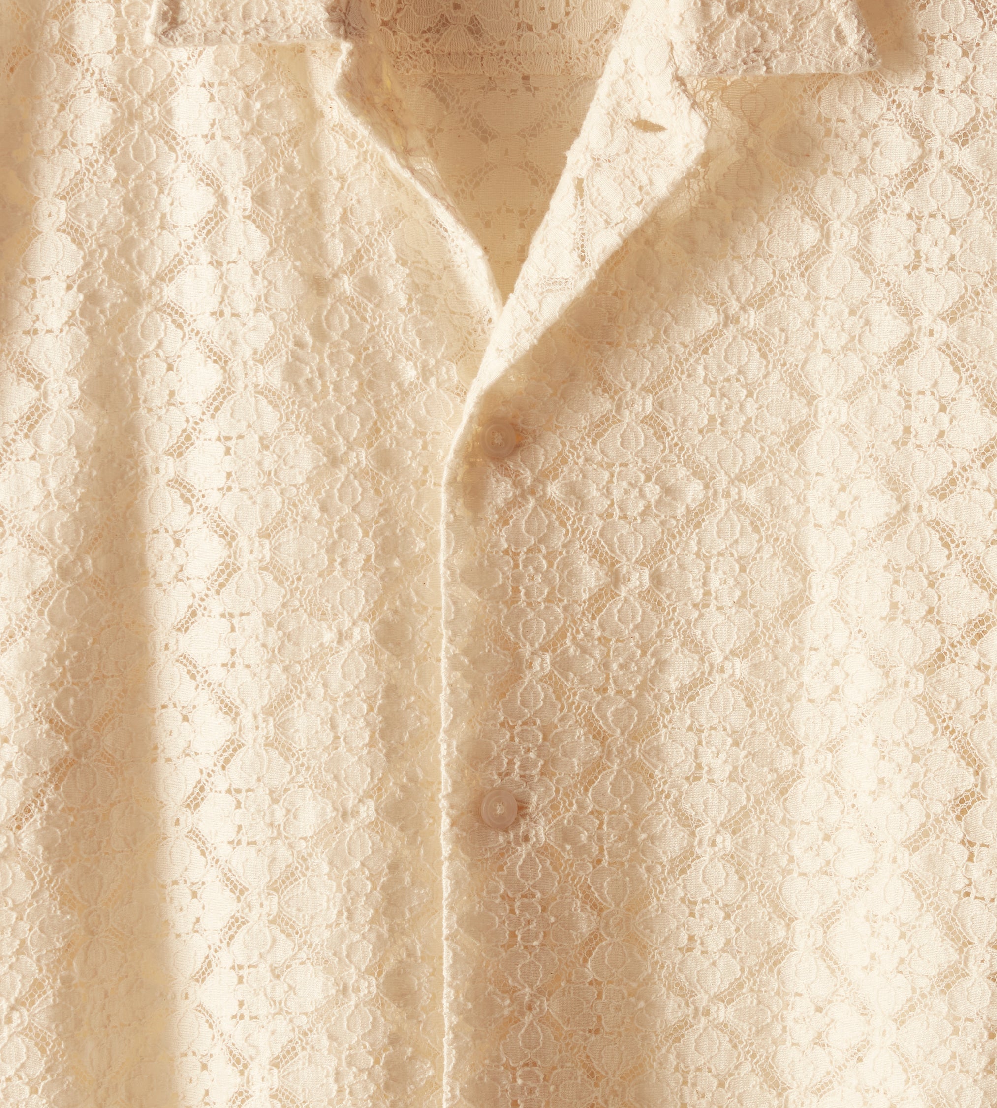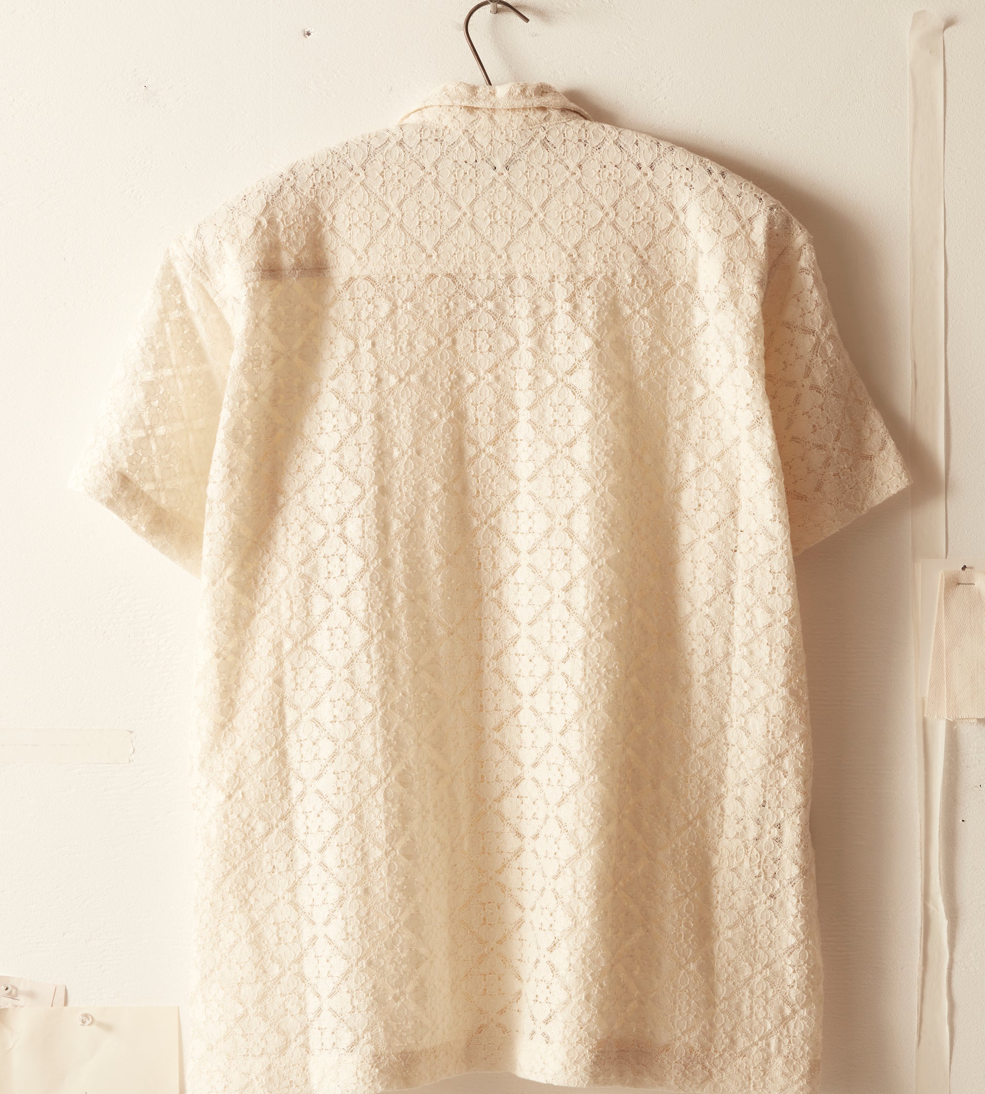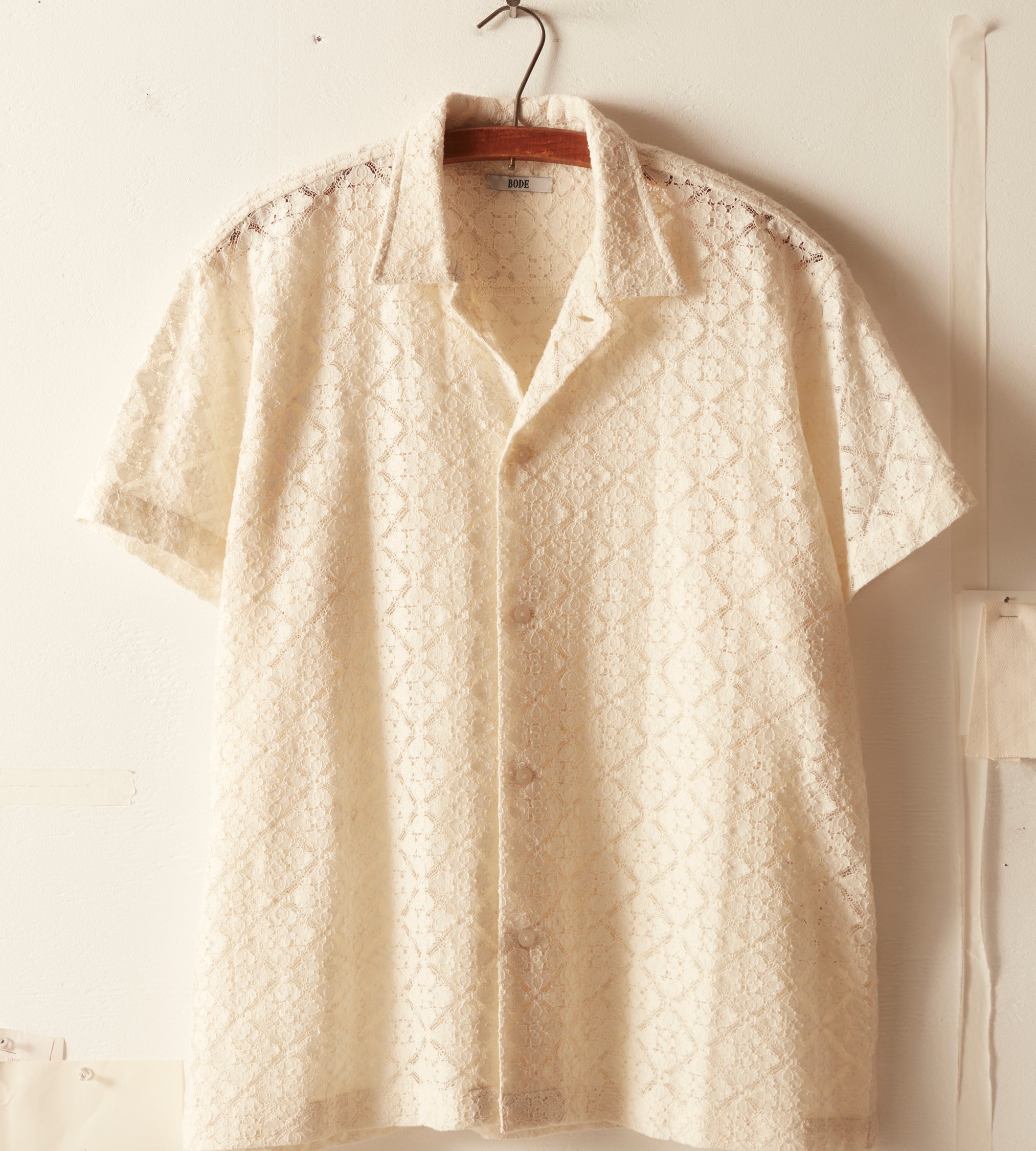 BODE Men’s Ready To Wear Tile Lace Short Sleeve Shirt – Ecru