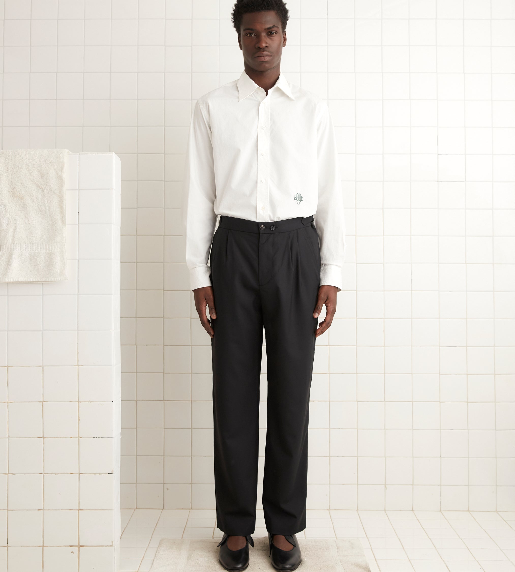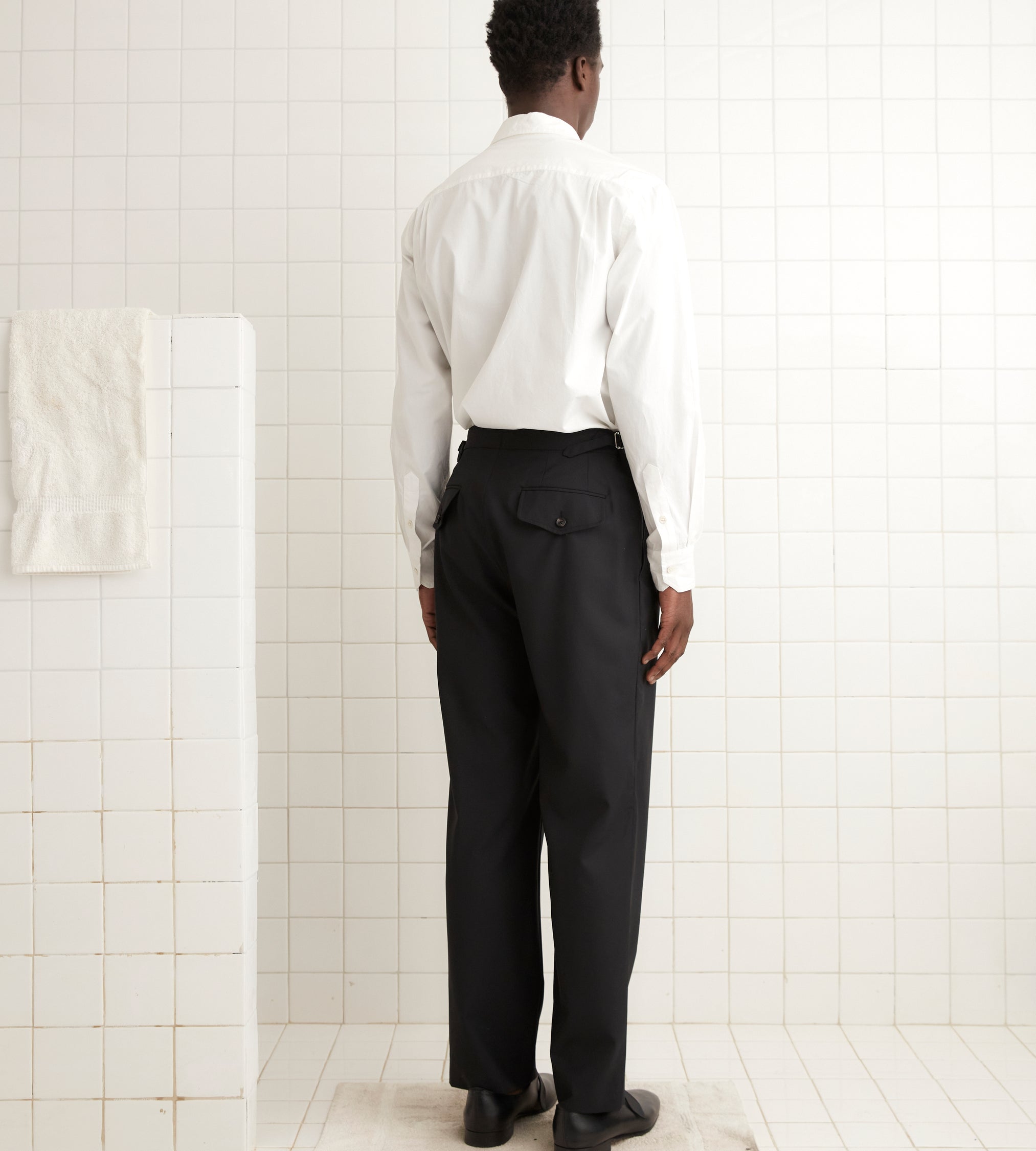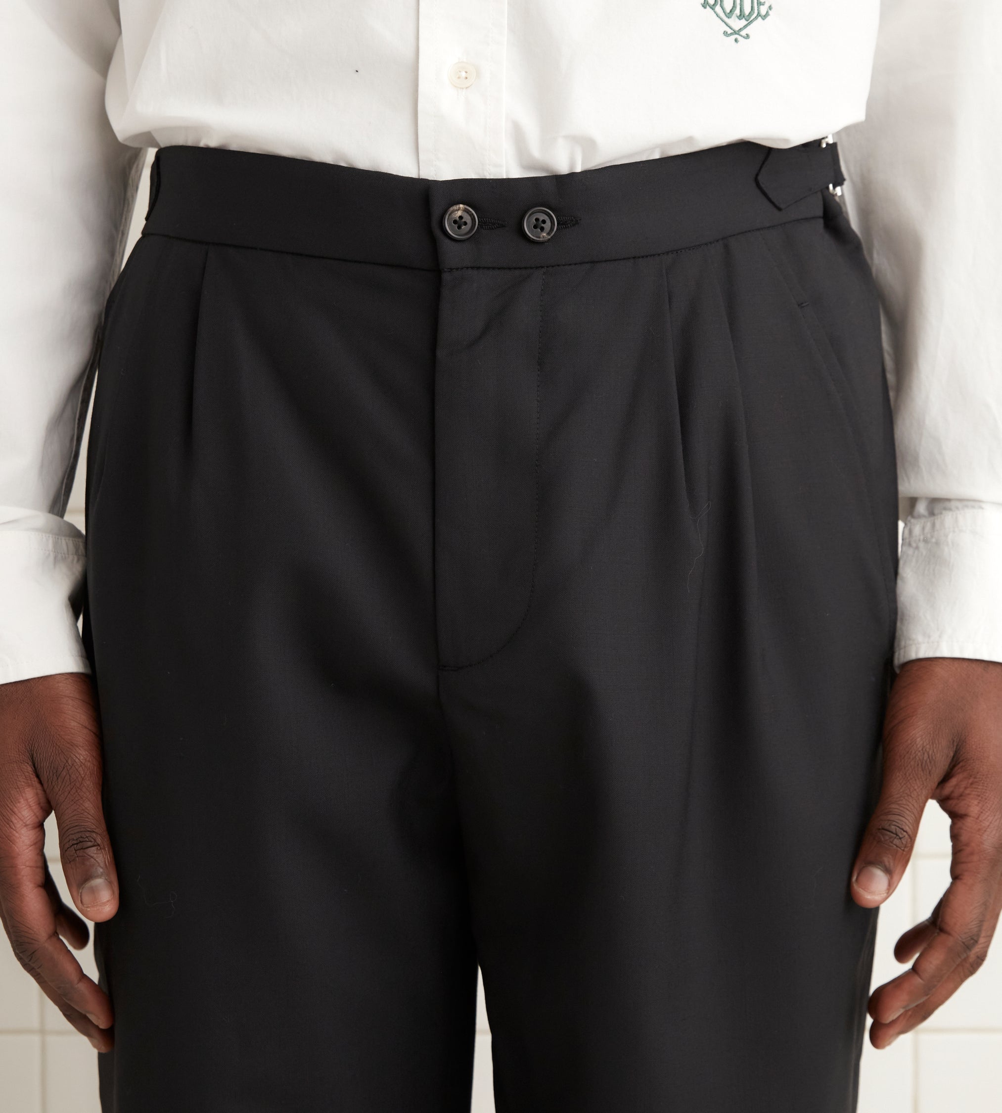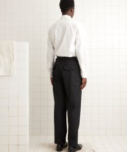 These double-button trousers are inspired by midcentury suiting trousers. They are cut from a lightweight wool, comfortable for all seasons, and have a mid-rise, straight-leg silhouette.