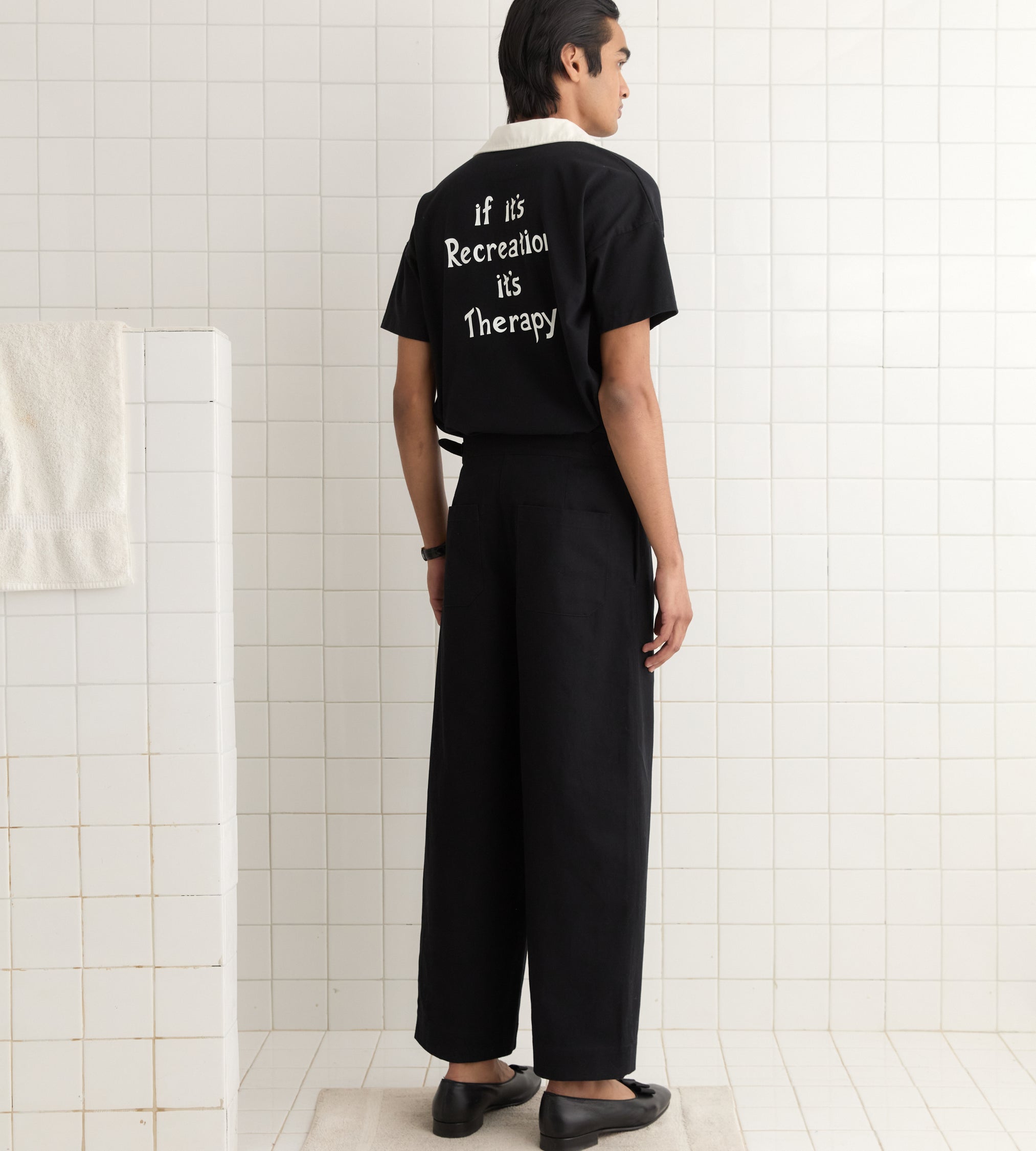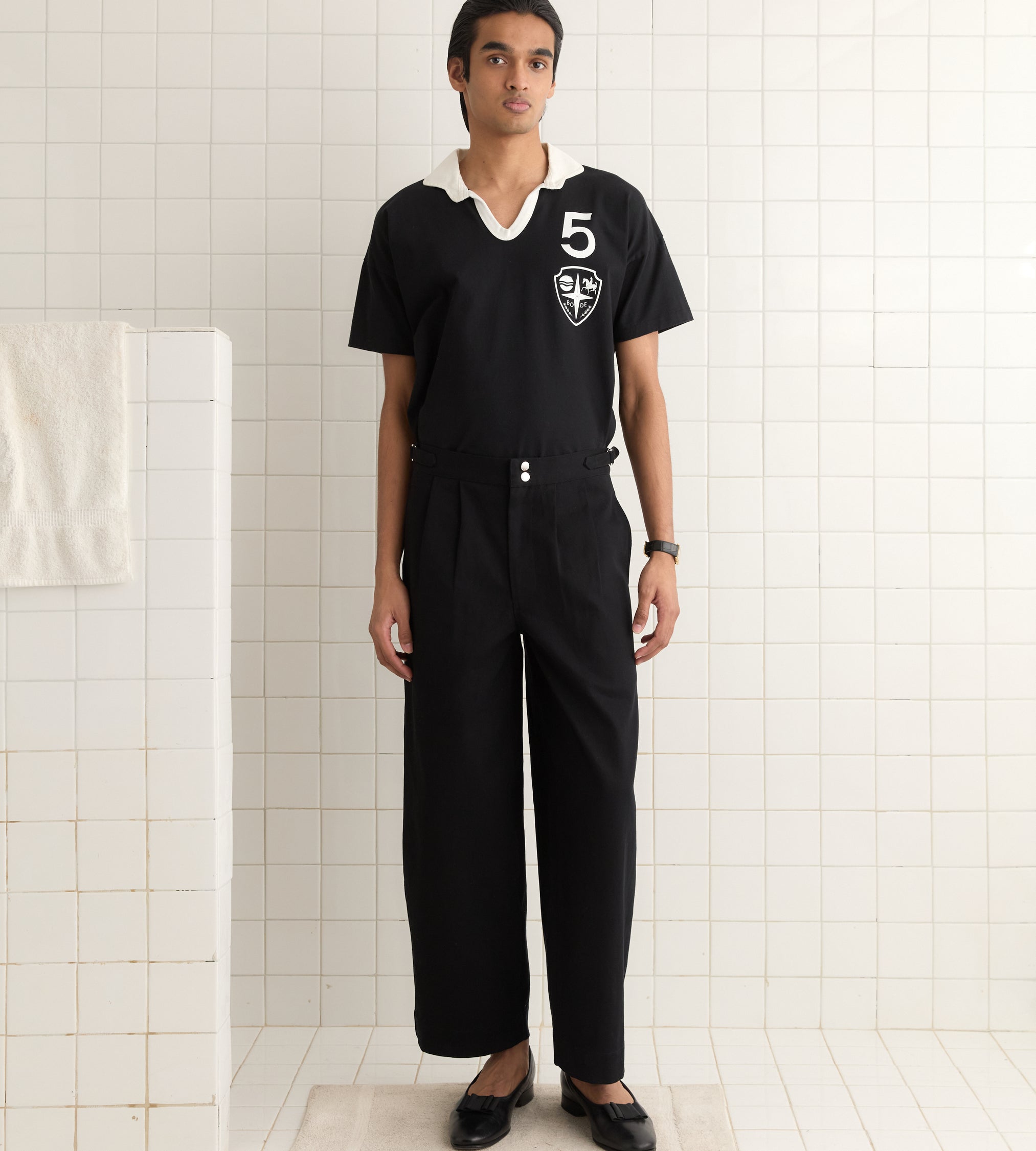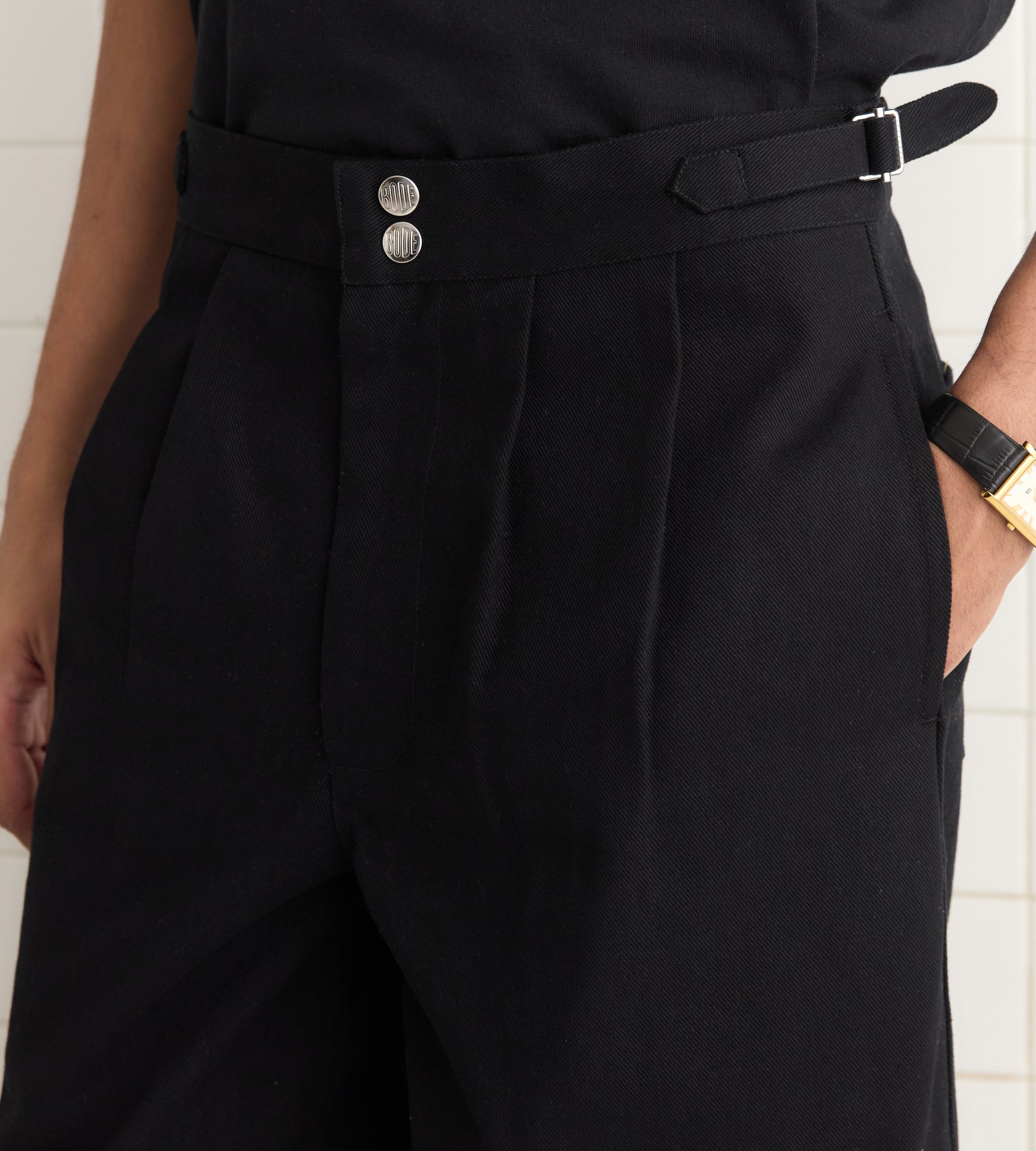 These trousers are inspired by vintage Australian military pants. Made of a heavyweight twill, they feature double front pleating and a snap closure.