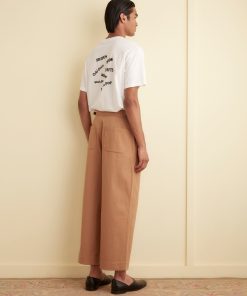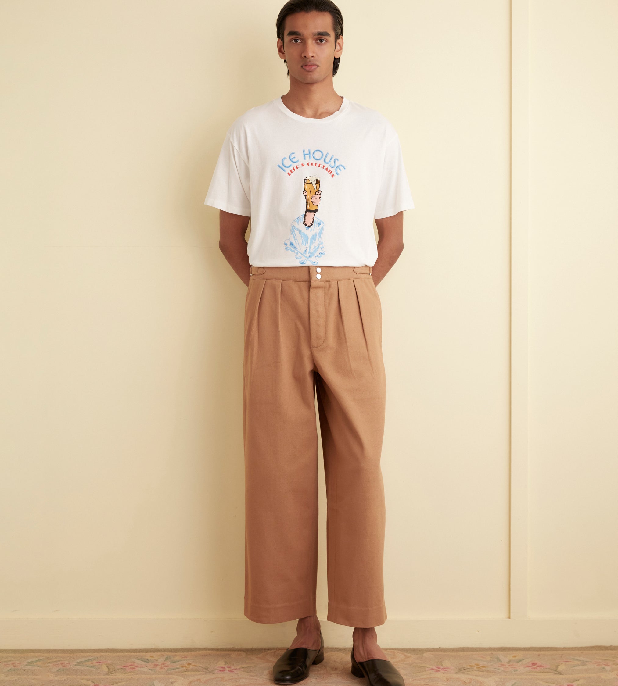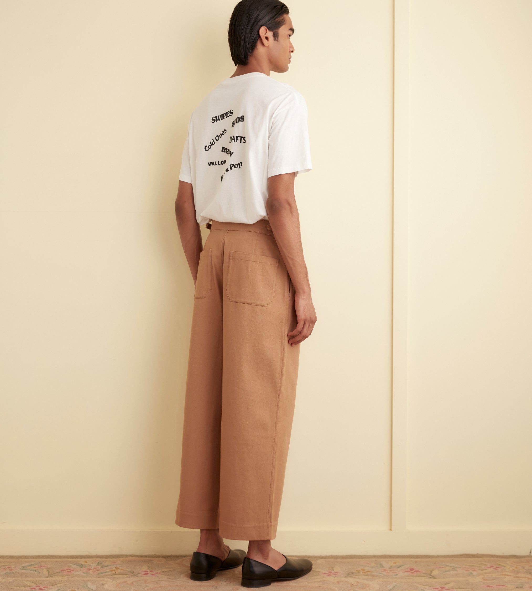 These trousers are inspired by vintage Australian military pants. We recreated the silhouette in a heavyweight canvas for this style. The trousers have a double pleat and snap closure.