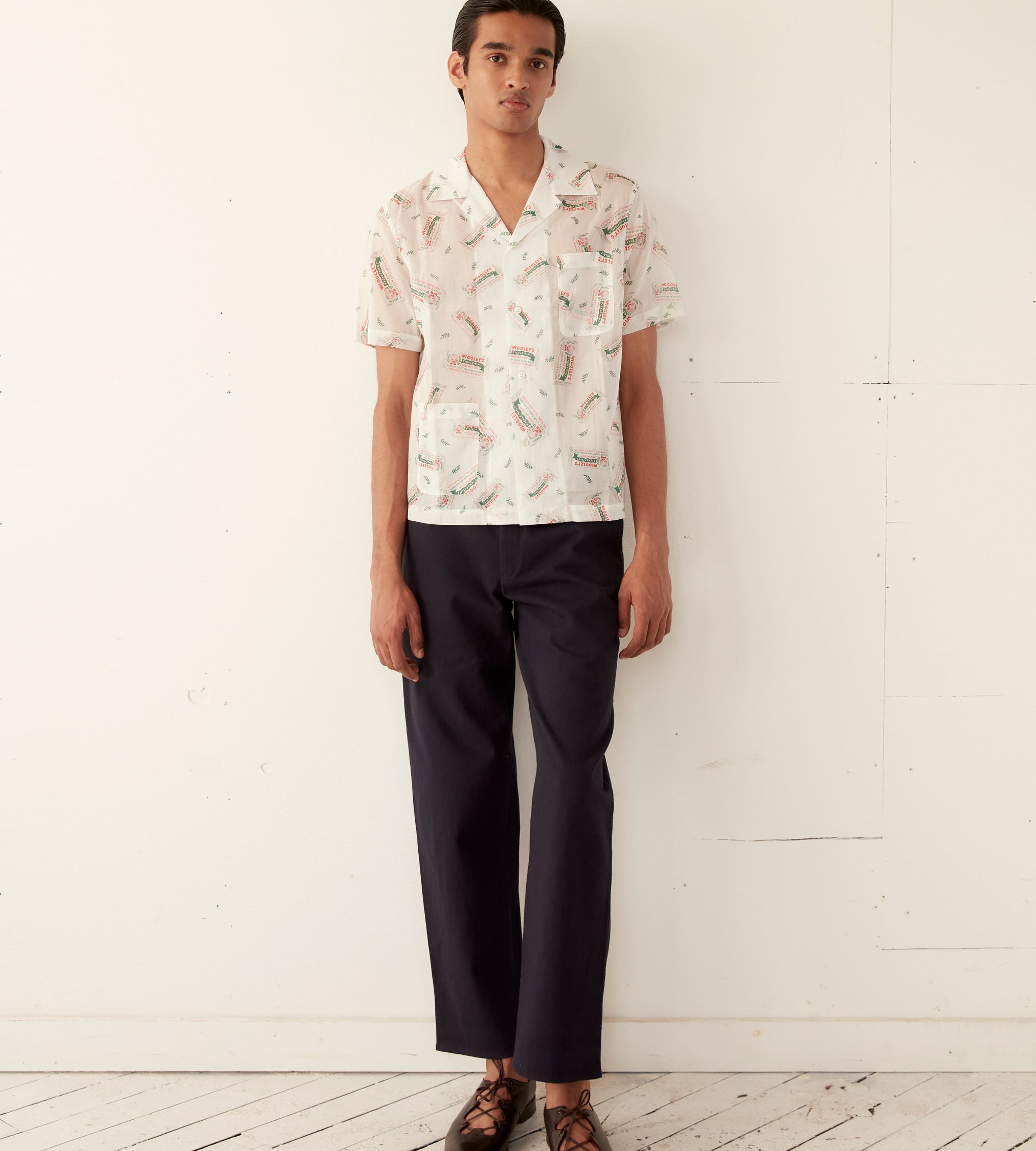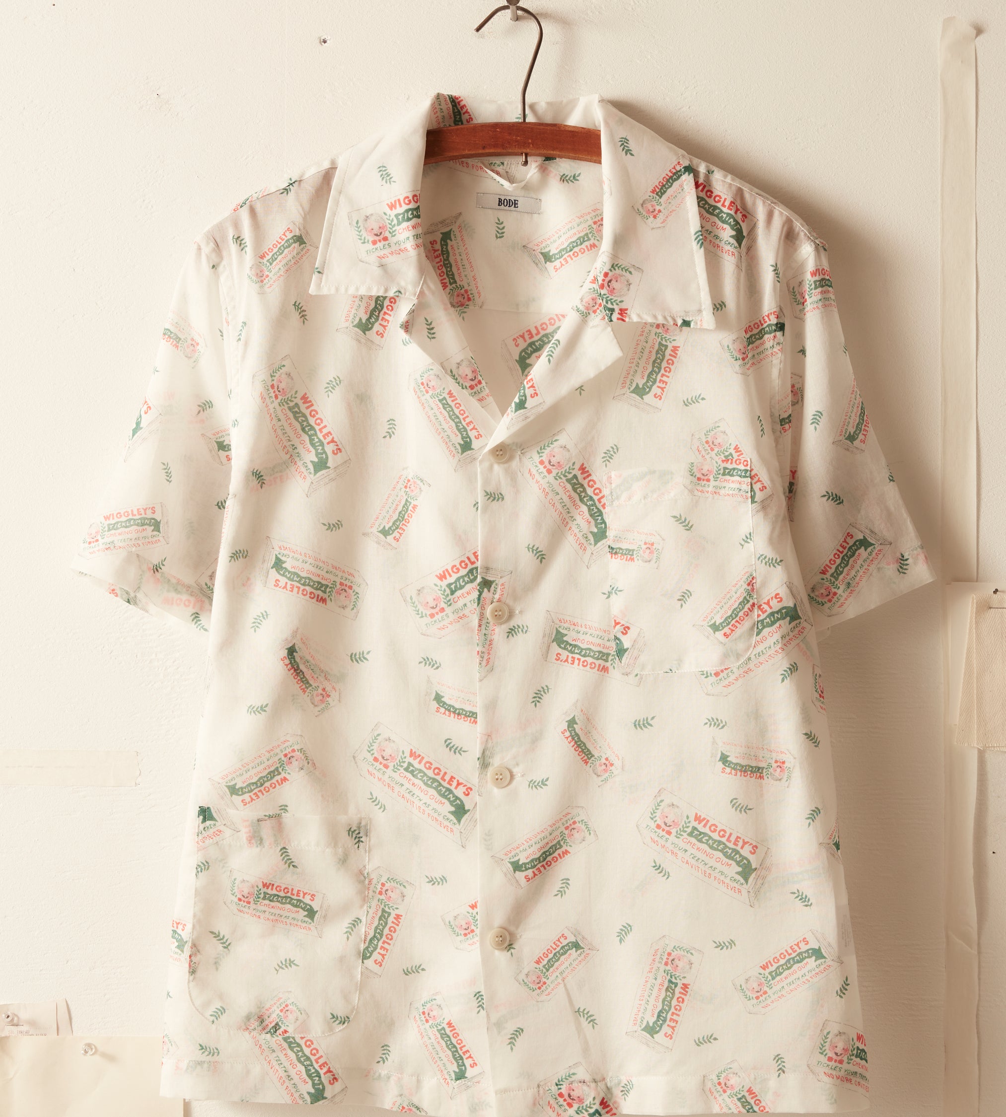 BODE Men’s Ready To Wear Wiggley Short Sleeve Shirt | White