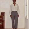 These flannel pajama pants are woven with a pale yellow and black stripe. They are cut in a classic silhouette, with an adjustable drawstring waist.