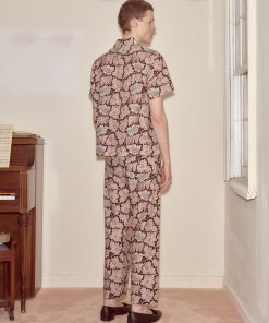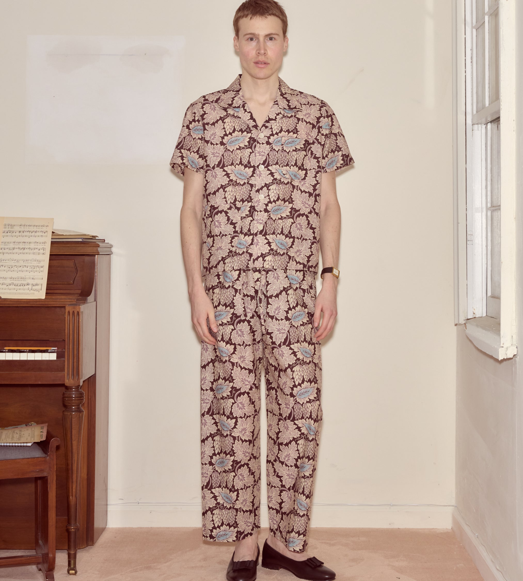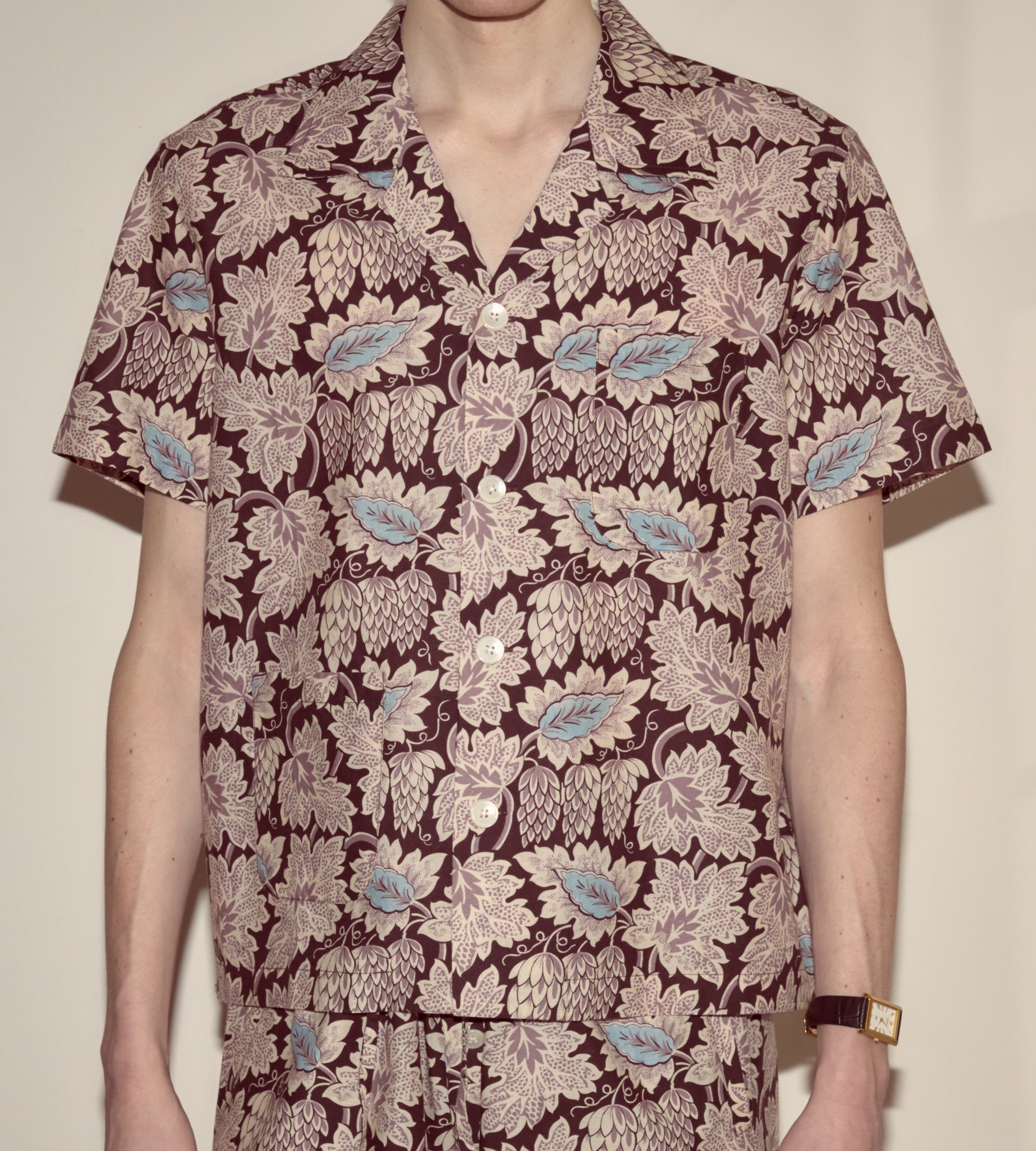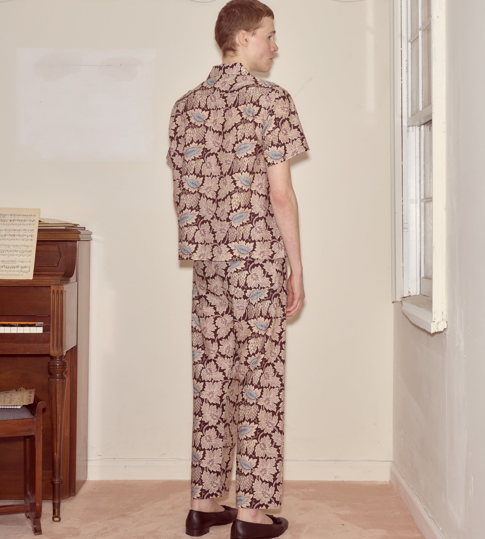 This lightweight shirt is printed with a intricate Victorian botanical pattern. It has a boxy silhouette and is cut from a crisp cotton/silk blend.