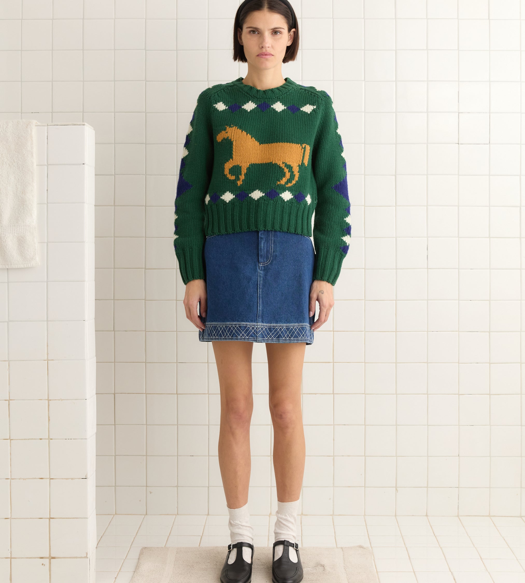BODE Women’s Ready To Wear Diamond Corral Sweater | Green