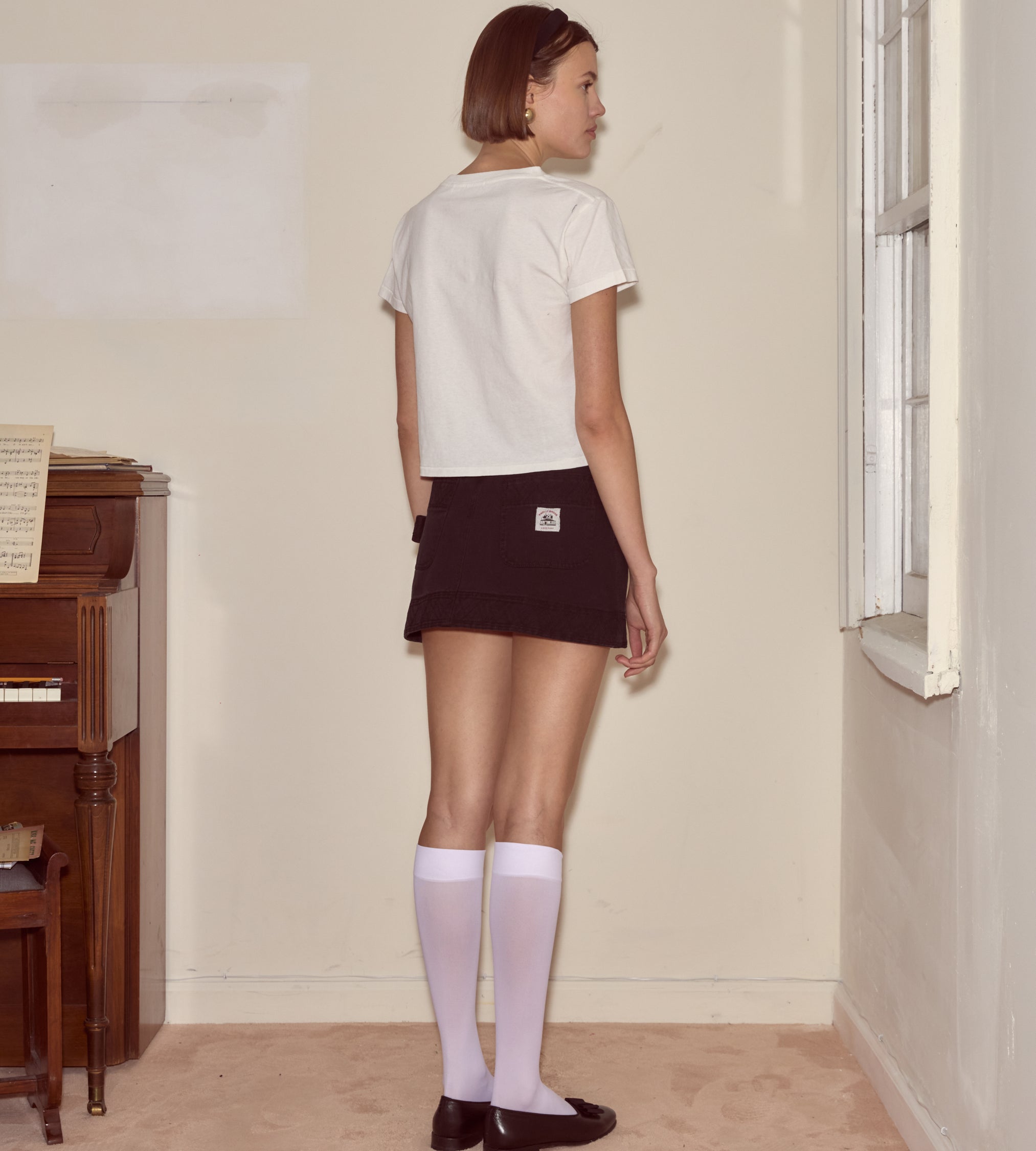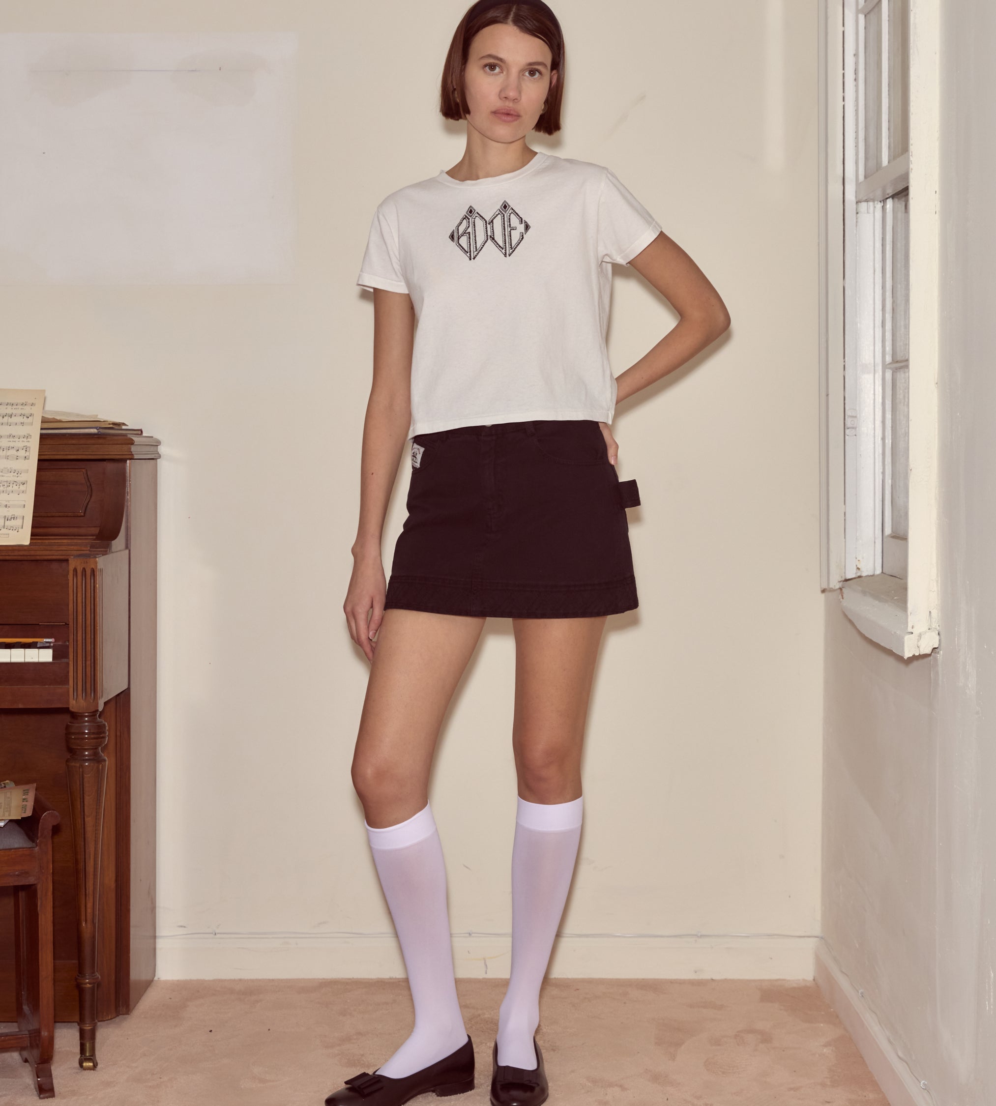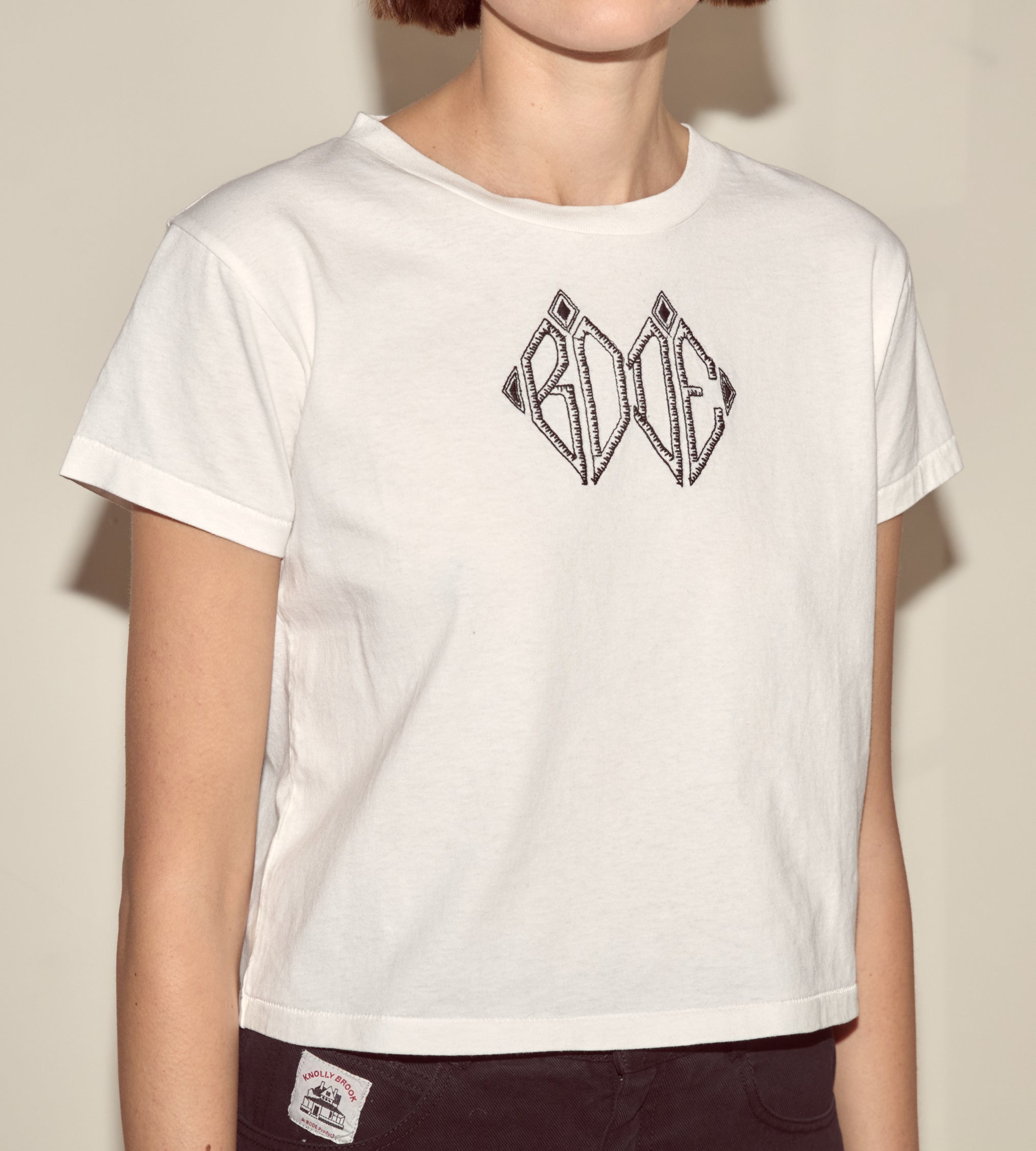 This shrunken tee is embroidered with a Bode monogram, an antique style taken from a book of monograms from the 1860s.