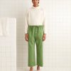 This jumpsuit is inspired by deadstock yardage from the midcentury, woven with a pattern of football players. We reproduced the fabric for this style. The jumpsuit has a loose, relaxed fit, with straps that cross over the shoulders and tie at the back.