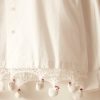 These pants are cut from silk seersucker, a distinctive fabric recreated from a French swatchbook, c.1930s. They have a wide-leg silhouette reminiscent of beach pajamas, loose trousers worn over swimsuits that evolved out of sleepwear. The wide popularity of beach pajamas helped to normalize women’s pants in the early 20th century.
