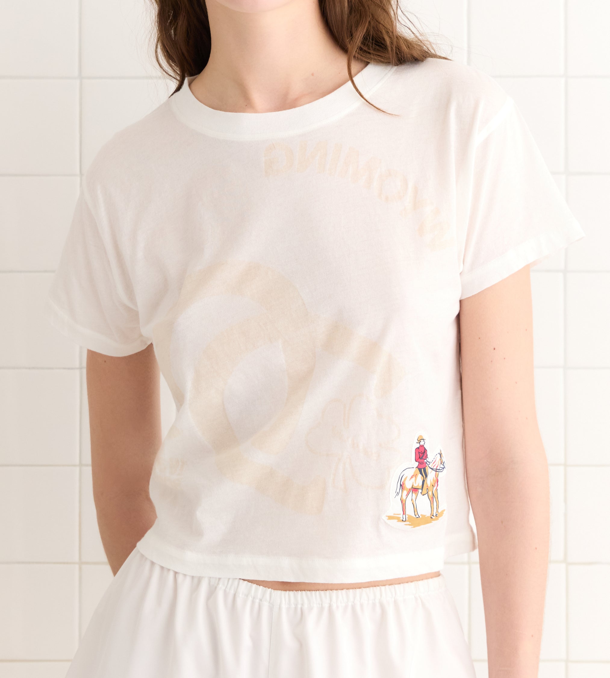 This style is inspired by a vintage tee from a horseshoes tournament. We reproduced the print for this style, which is cut from vintage-weight, slightly sheer cotton.
