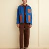 This style is inspired by a vintage French cardigan, sourced in Paris. We reproduced the silhouette, with its pointed collar and its tie-neck detail, in cashmere. The cardigan is trimmed with droplet beads.