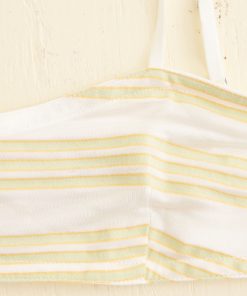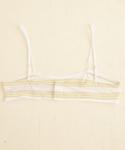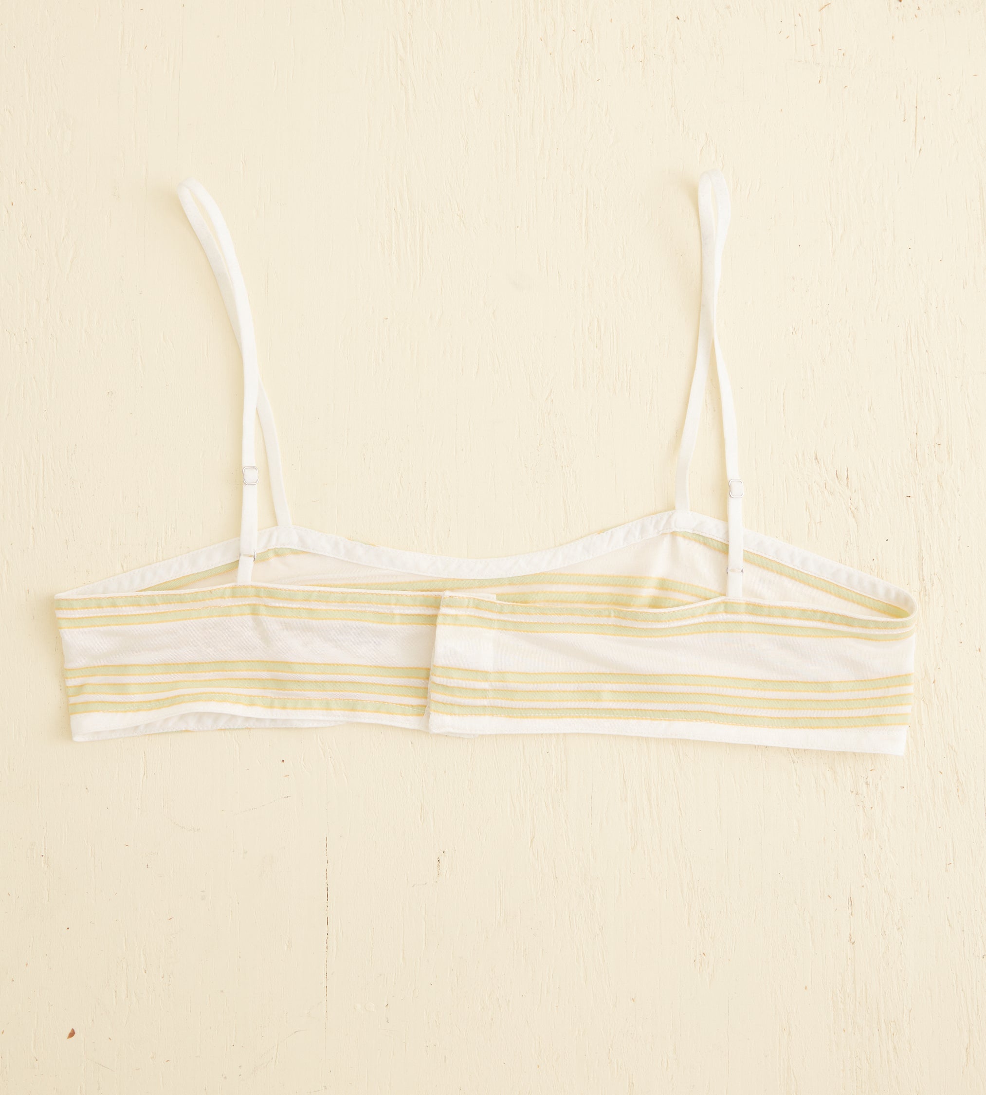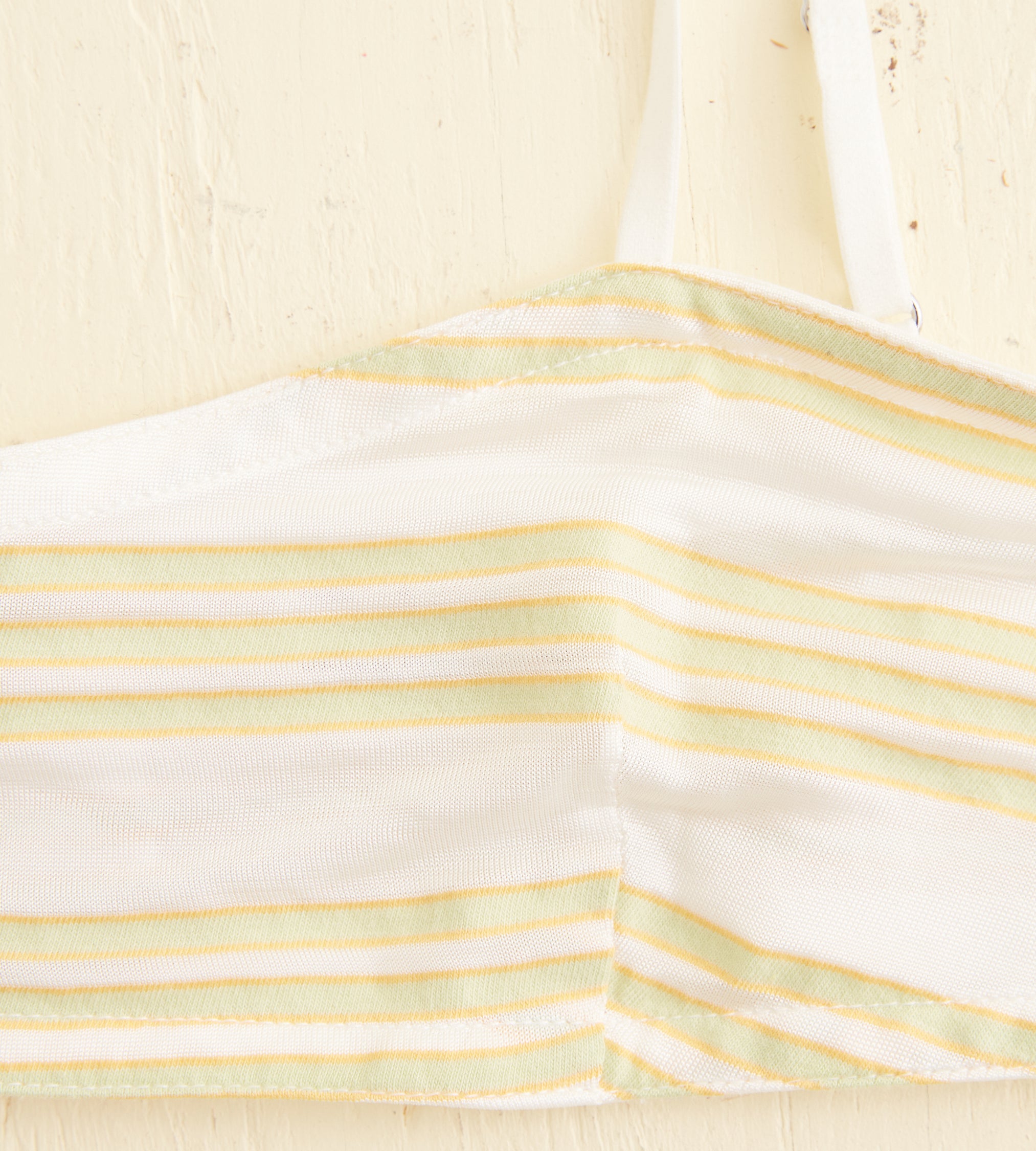 This bra is inspired by a 1920s sock, which was patterned with this green and yellow stripe. We reproduced the original stripe for this bralette, made from a silky cotton/rayon blend.