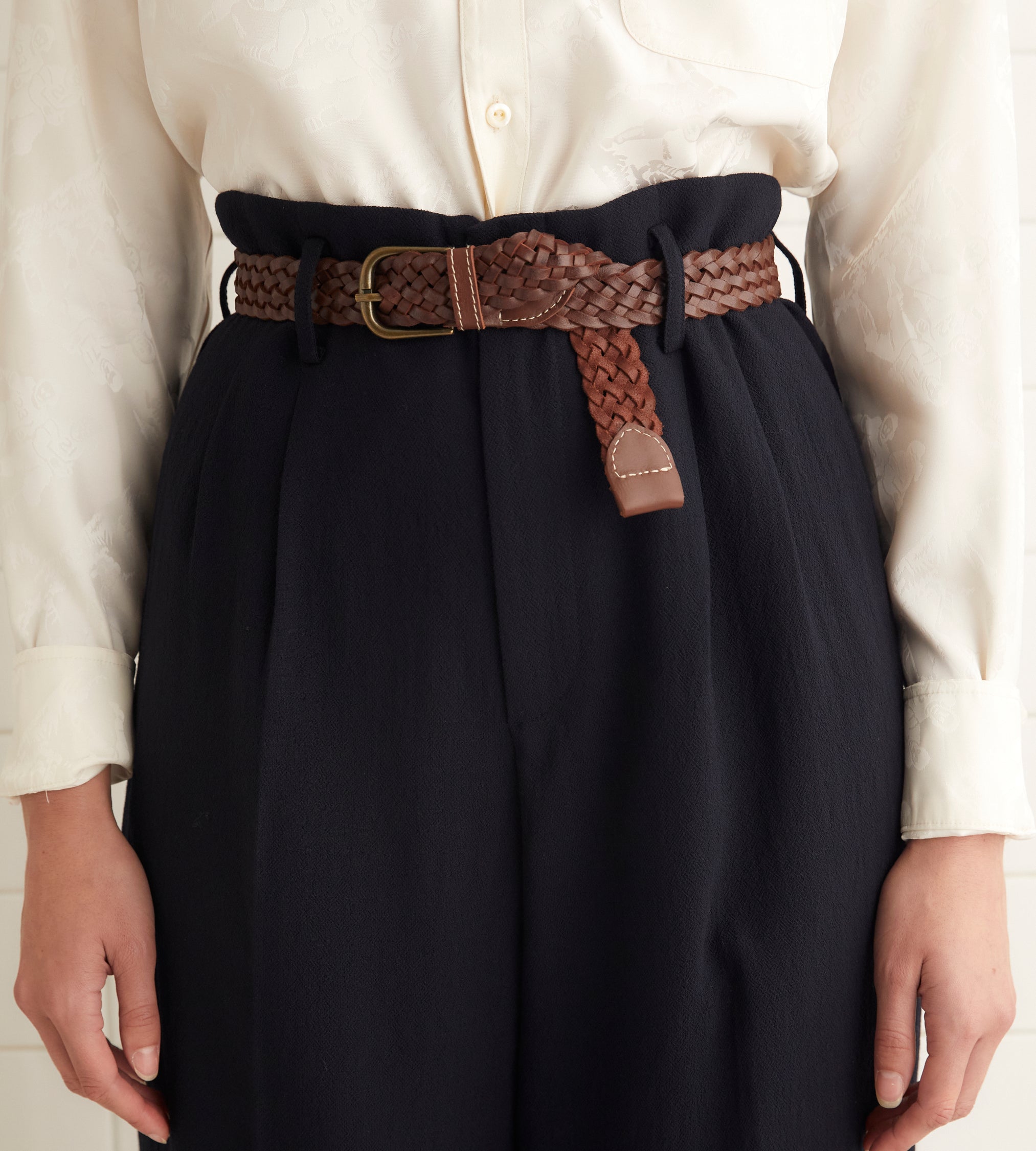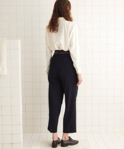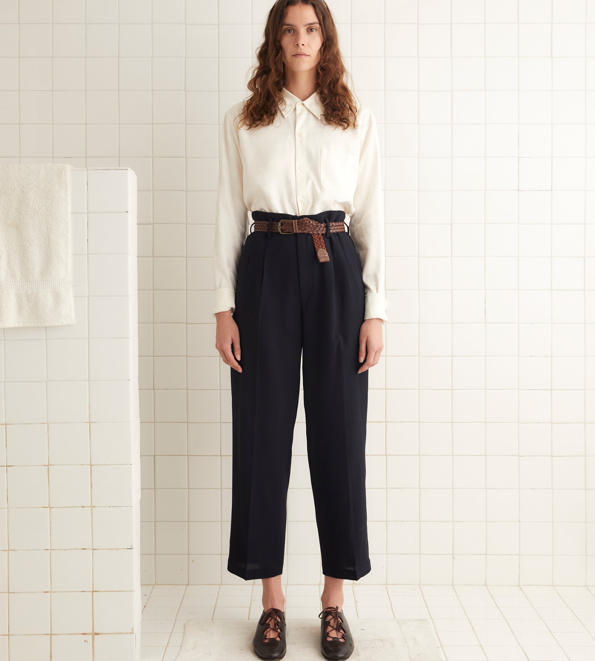 These trousers are inspired by a pair of pants from the 1950s. They have a mid-rise and a wide leg and are cut from fine wool crepe.